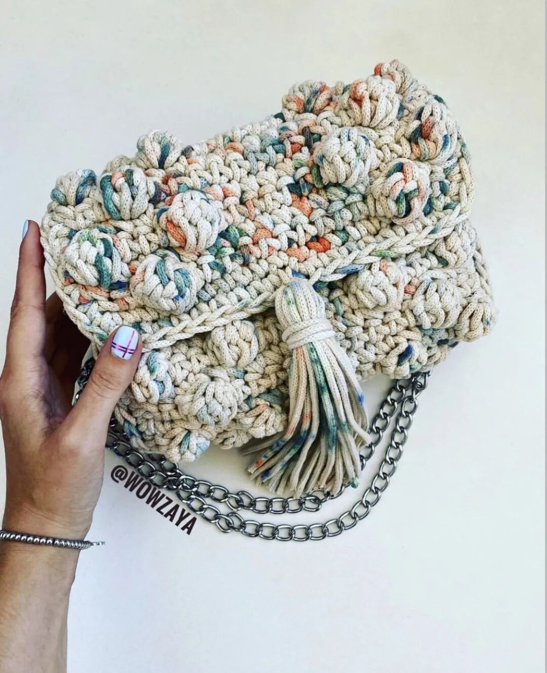 和Marni异曲同工的还有这款LaMILANESA的编织包,它最大的特点就是致力于寻找回收天然的面料,用它来覆盖包包,循环利用的环保理念和钩针手工艺结合,为环保品牌点赞!