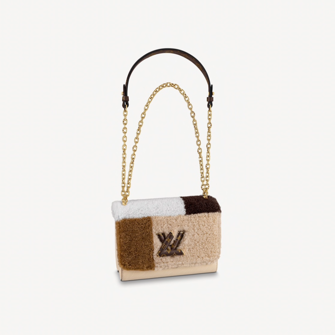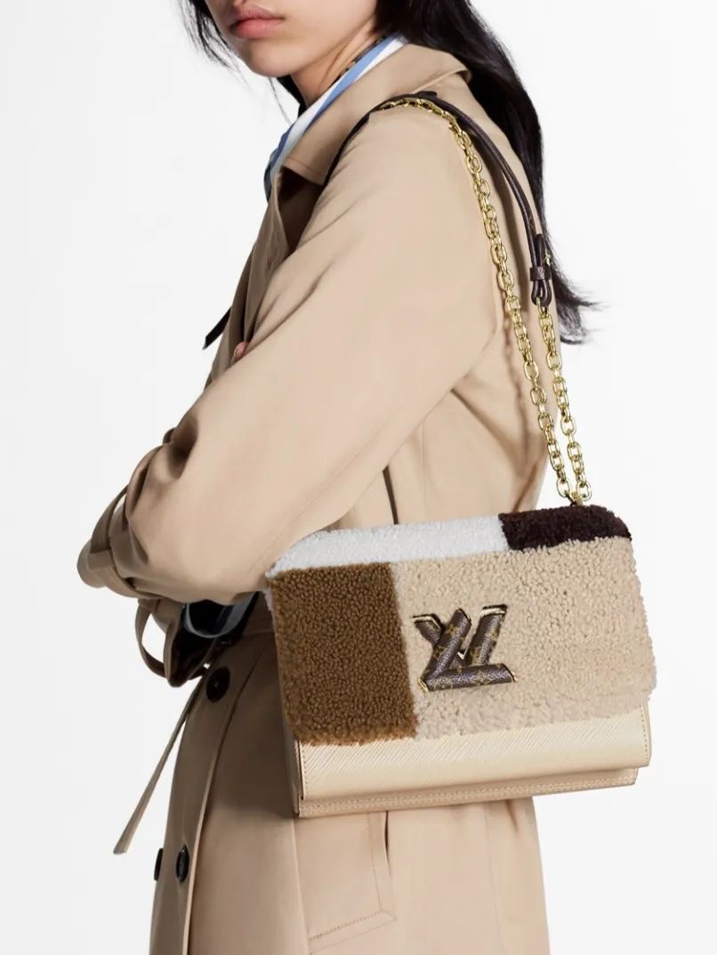 Louis Vuitton最会推陈出新,“犯规”地采用了多色块拼接,这只秋冬最新款的Twist单肩链条包身披丰盈羊毛,细腻嵌花呈现色彩各异的拼贴效果, LV Twist 扭锁采用Monogram 帆布覆盖,诠释了皮具工艺变幻经典设计的更多可能。