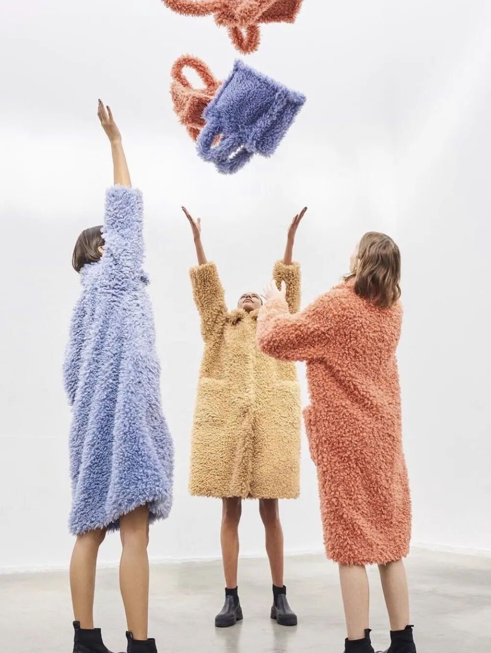 这次STAND STUDIO发布了很多系列,除了细腻的绒毛,还有自然撕边的羊羔毛样式,采用的都是环保的素皮。