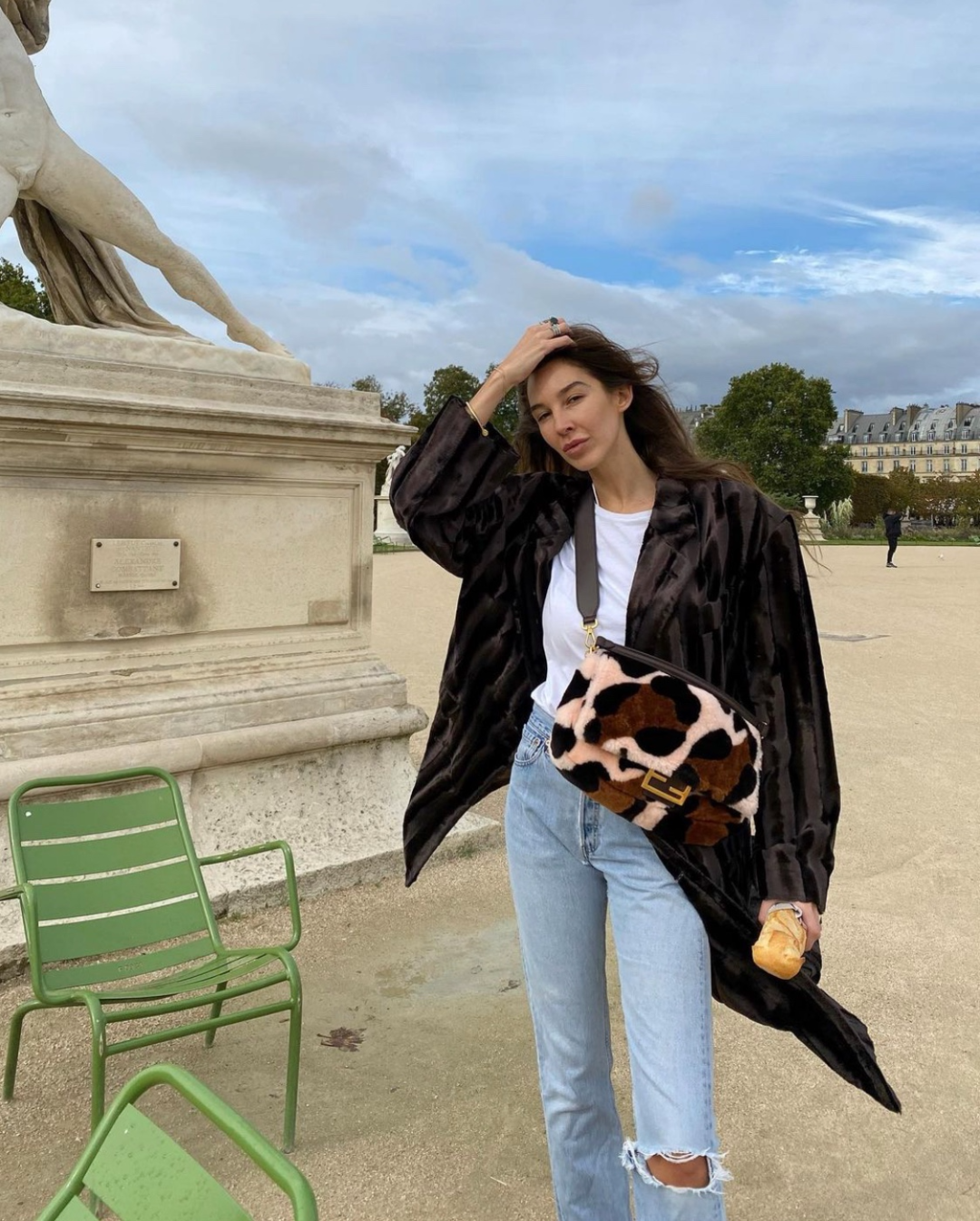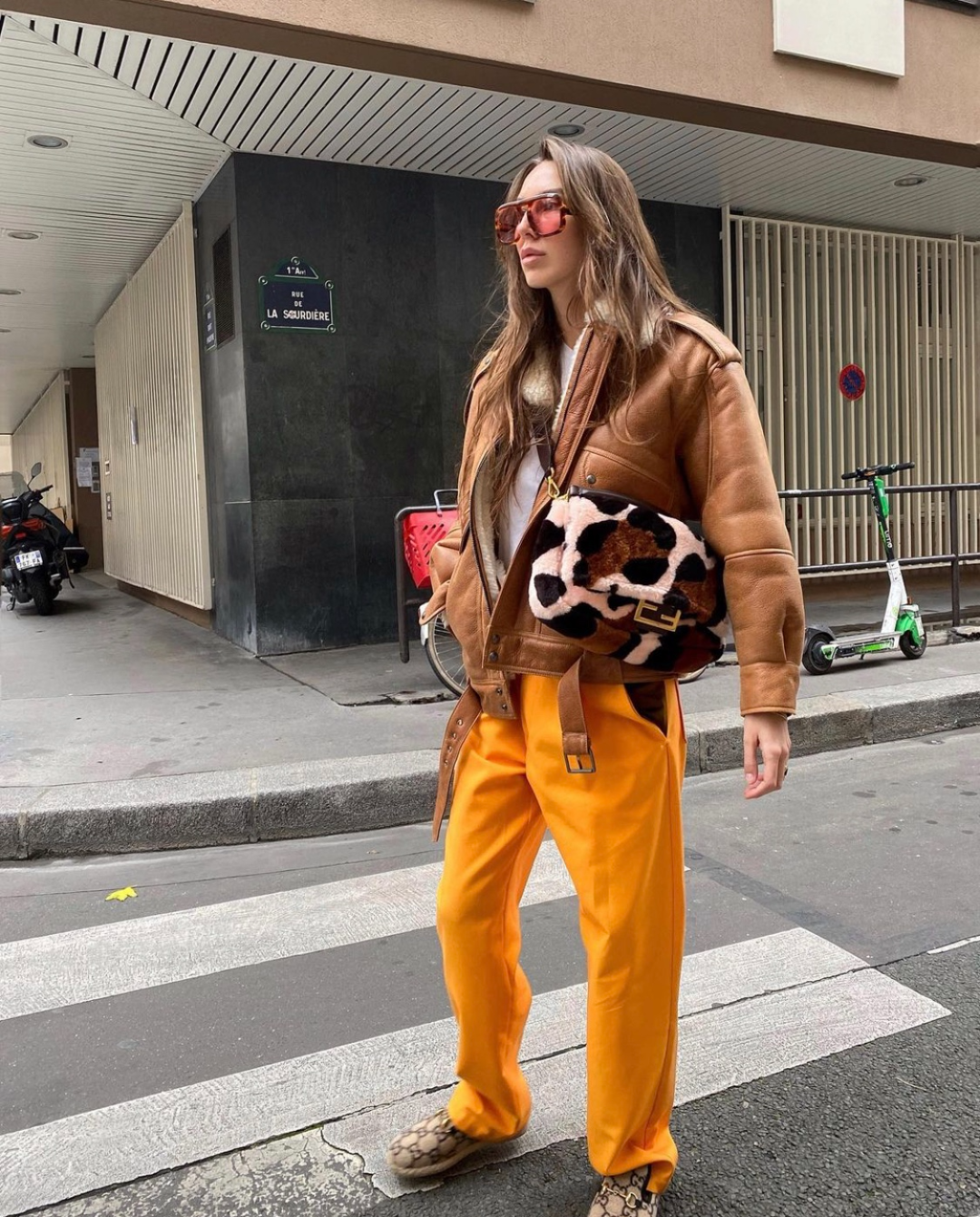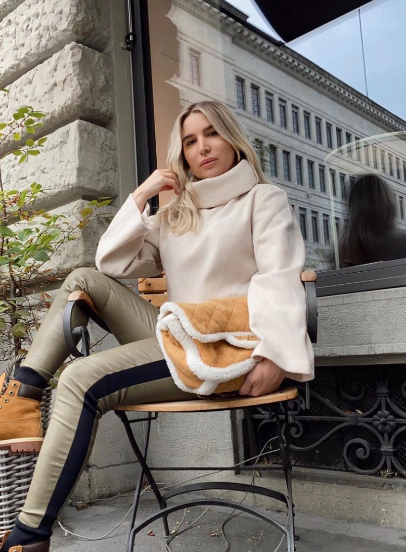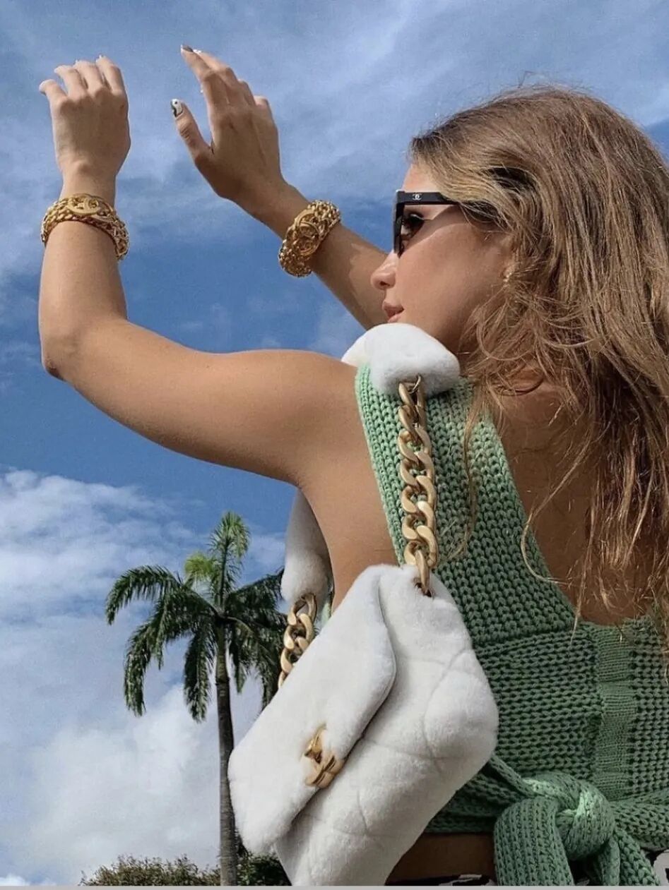 要不然怎么说CHANEL够出色,不管是软萌风的全绒毛包包,还是皮毛一体的拼接包包,CHANEL可谓是做好了两手准备,Leyla Hajrovic手上这款CHANEL皮毛一体手袋可以说是秋冬必备了,驼色与羊羔毛结合高级质感十足,温暖系数直线上升。