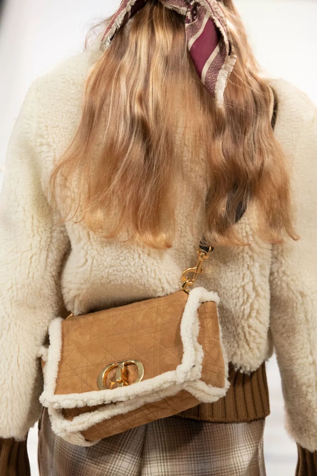 还有这款诞生于2021早春度假系列的手提包也是令人眼前一亮,少有的三角形托特,加以毛绒勾勒出的经典菱格,十分具有辨识度,在秋冬背出不一样的时髦感。