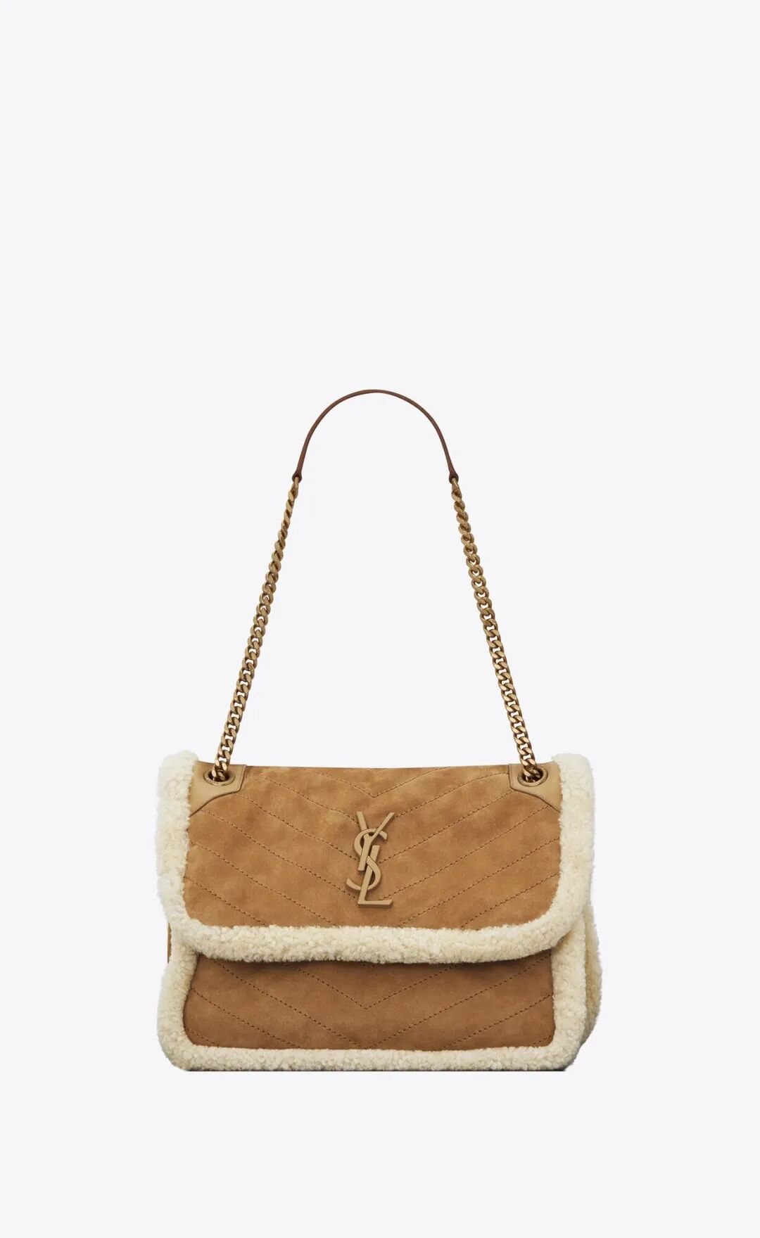 Saint Laurent的粉丝们也要注意了,一直火的NIKI包包也推出皮毛一体款式!依旧采用可调整的链条肩带,可以根据穿搭需要调整单肩背或斜挎背,反正怎么背都是:好看!