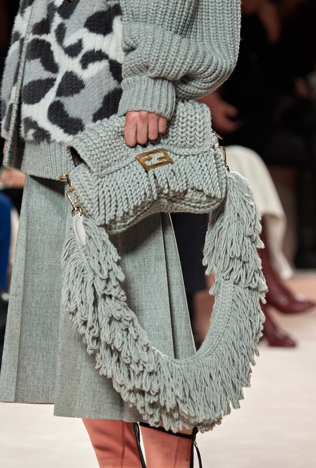 如果不只是想手拿,还想兼具斜挎,那FENDI 2020秋冬系列绝对是最不错的选择,这款法棍突破了一直以来精致小巧的印象,粗针编织加以流苏,创造出摇曳流动的经典,包带更是以长条流苏层层堆砌,增添了粗犷的动感!