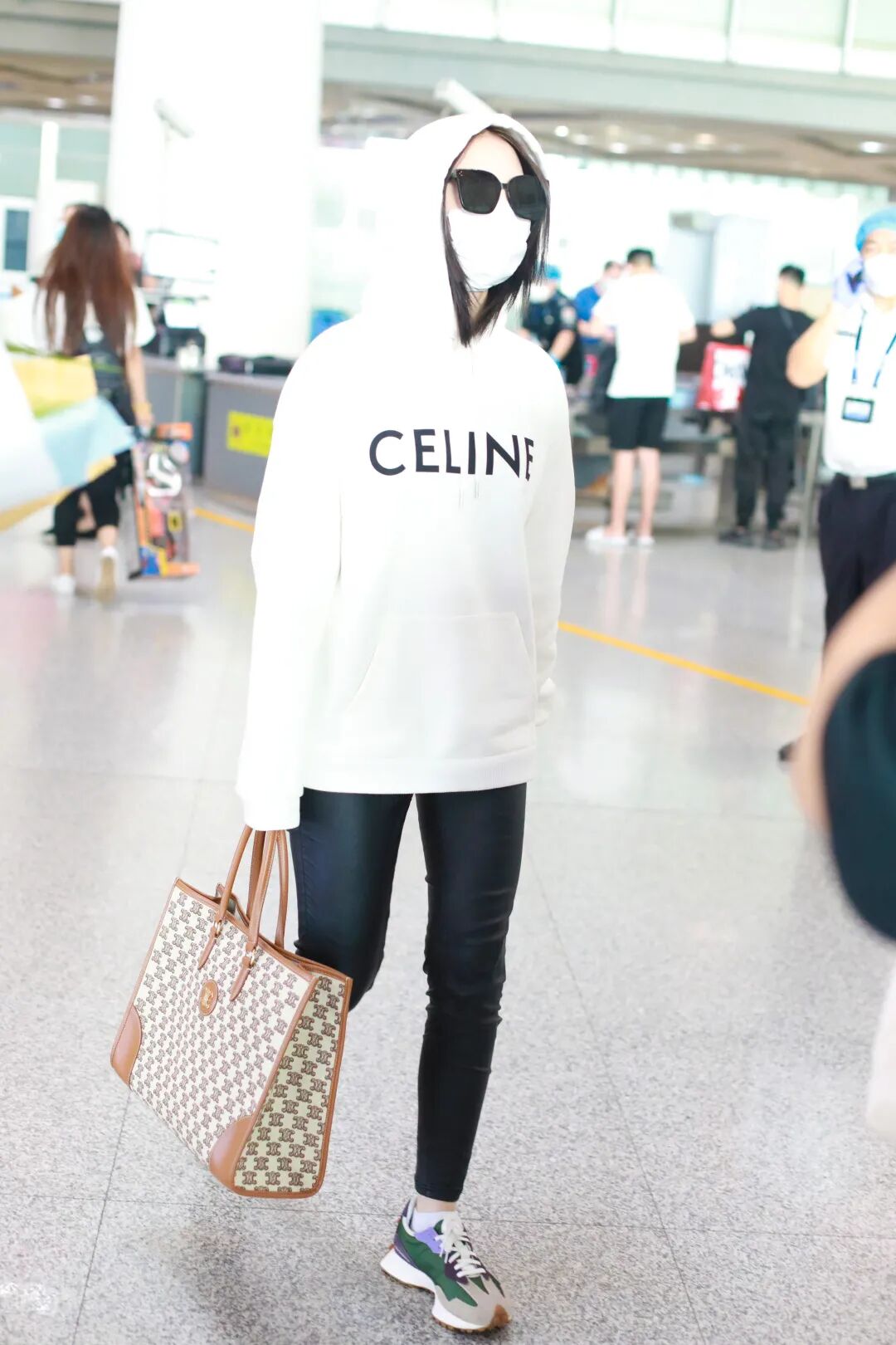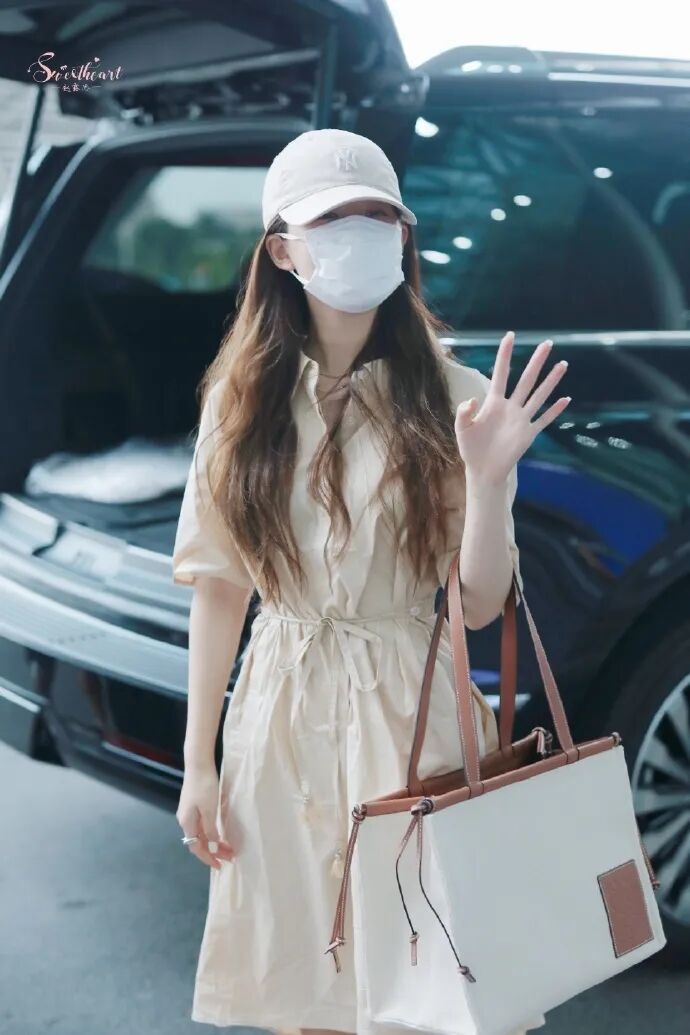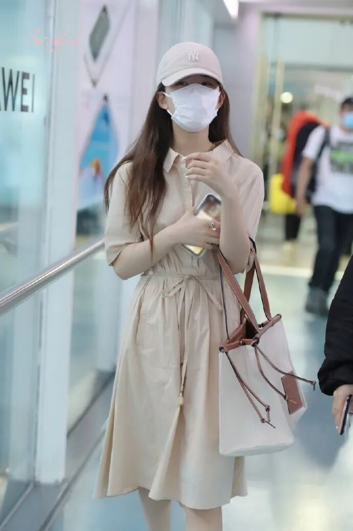 之前和孟美岐一起在机场LOOK现身过,她背的是焦糖色,实用与美貌一个都不少。