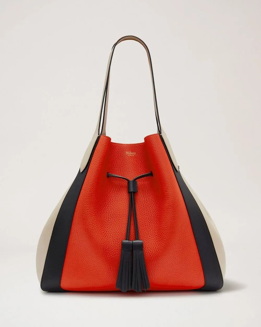 如果你想走英伦风路线,可以搞一个Mulberry Millie系列的TOTE BAG过把瘾,鲜亮的拼接色设计给简单的包包增添了生机与活力,双流苏抽绳的线条让包包看上去很有律动感,背上后精致优雅的成熟魅力女人就是你了。