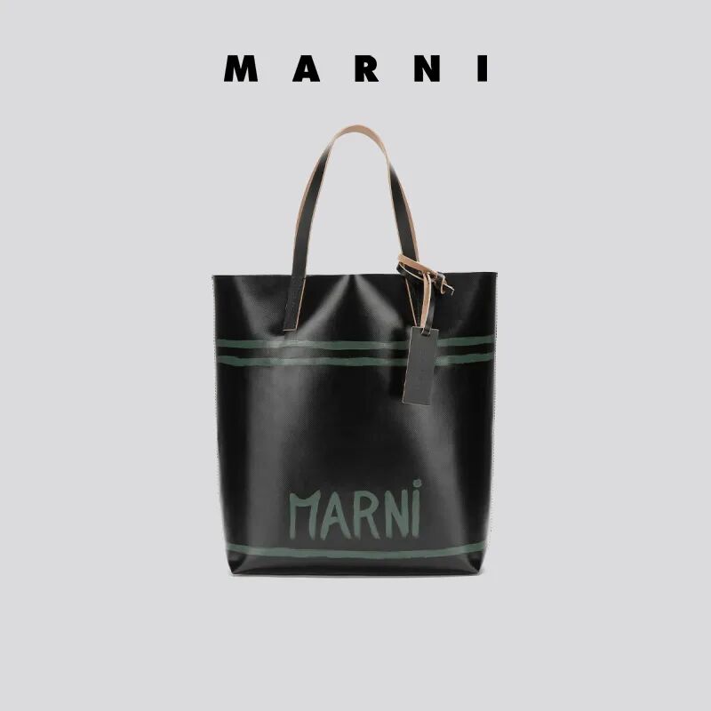 最近Marni还推出了双十一限量手袋,Marni Tote直接把购物袋摇身变成了艺术画布,醒目的涂鸦标记是主角,实用的大空间更不用说了,采用聚氯乙烯及皮革制作的材质,蛮特别的。