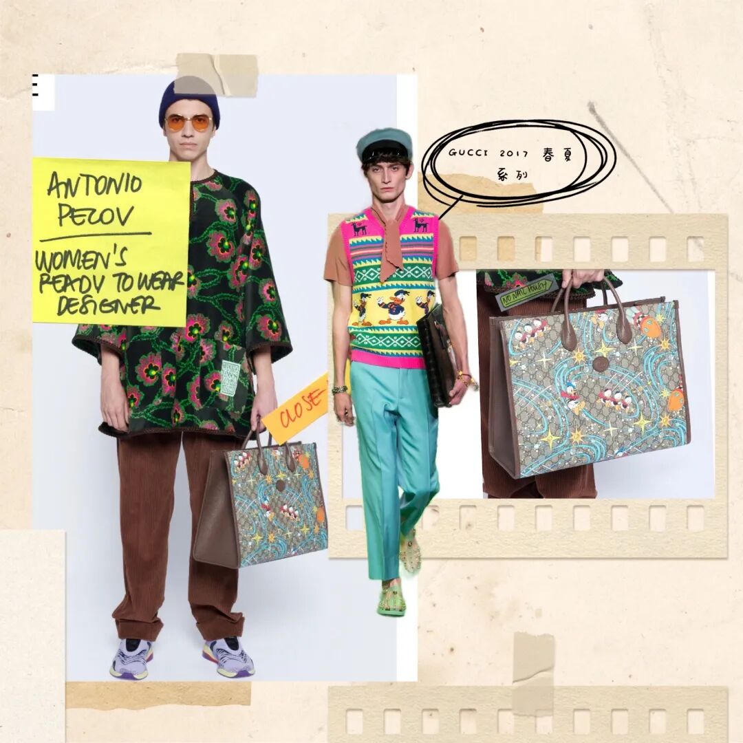 除了怀旧,GUCCI在2021春夏系列中还搞起了童心未泯的好玩创意,把哆啦A梦、唐老鸭都搬到了GG TOTE BAG上,开心、贪吃、生气的表情都敲可爱!
