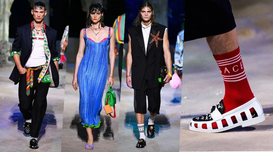 “海底乌托邦”般的Versace 2021春夏系列,不仅有五彩缤纷的“海味”新衣,鞋履也是同样精彩。这双拥有镂空编织元素的乐福鞋,在纯色的鞋身上搭配了分量十足的金色海星,猛的一看好似外公的复古凉鞋?虽然有些难以搭配,但它的透气性和舒适度一定无人能敌。
