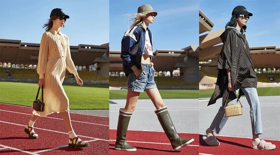 CELINE将秀场搬到了体育场上,伴着阳光明媚的轻松氛围,让这款草编的饭盒形提包更显轻巧,甚至已经脑补出背上它度假的情景了!同样实用的,还有墨绿色长筒雨靴,哪怕是遇到泥泞的雨雪天气,也能在它的保护下,让双脚时时保暖。