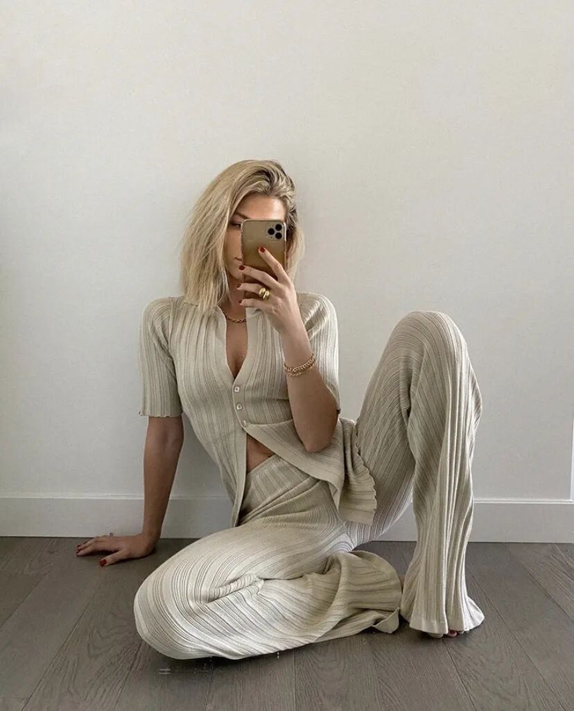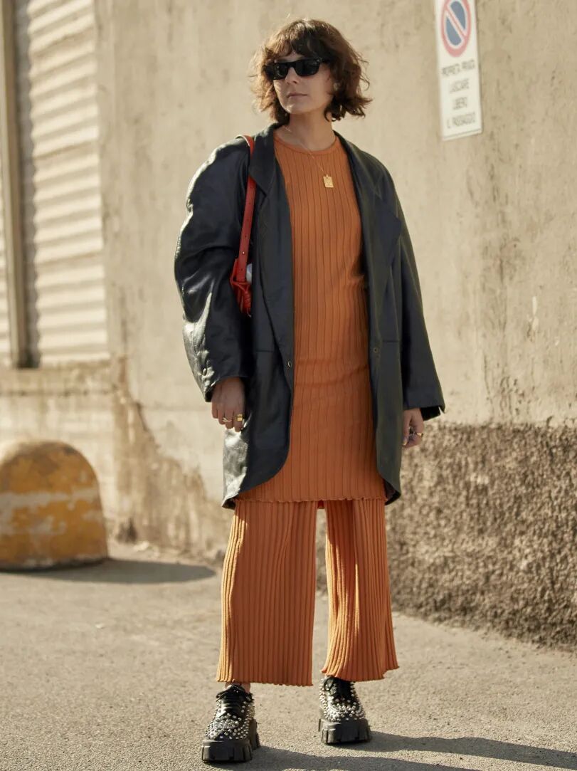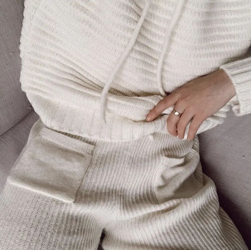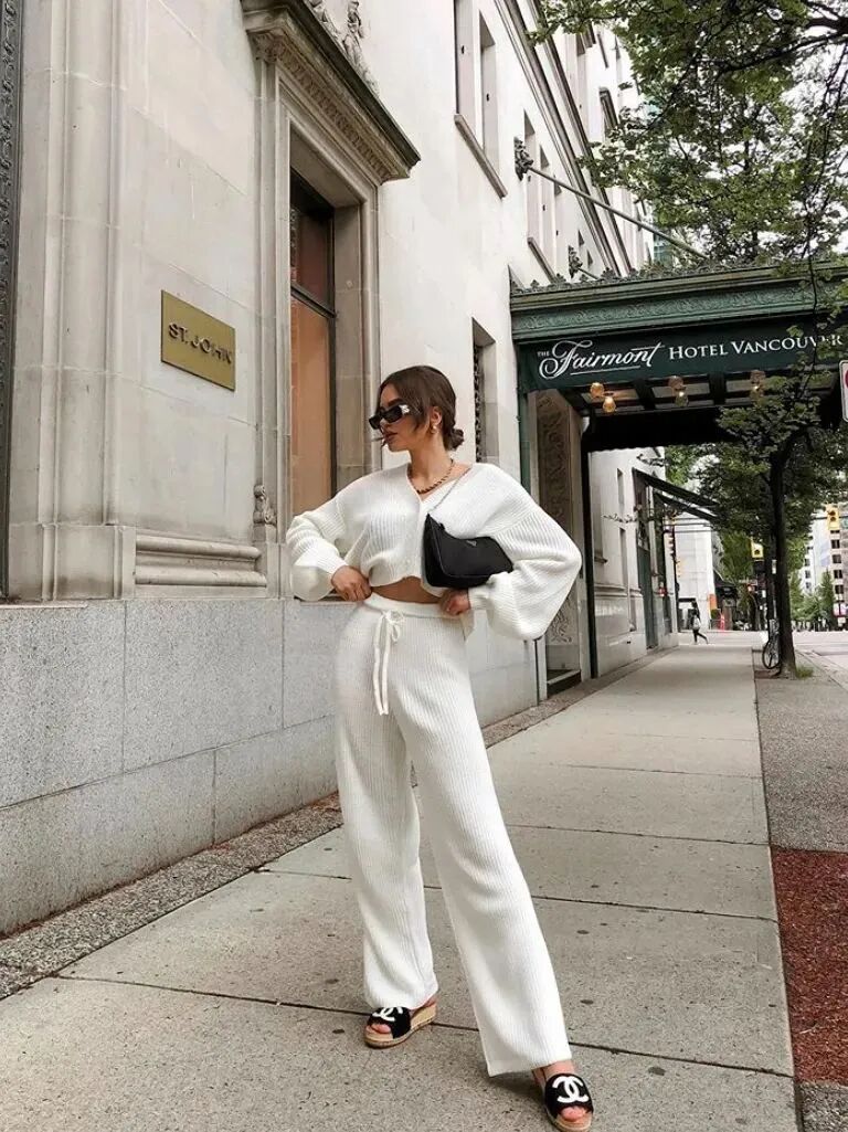 Totême则干脆做了套装,肉眼可见的温暖简直不要太心动,时尚博主Savi用这条针织裤搭配长款上衣,禁欲的高级美感瞬间扑面而来!