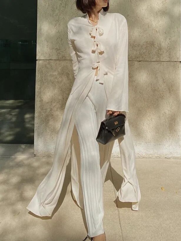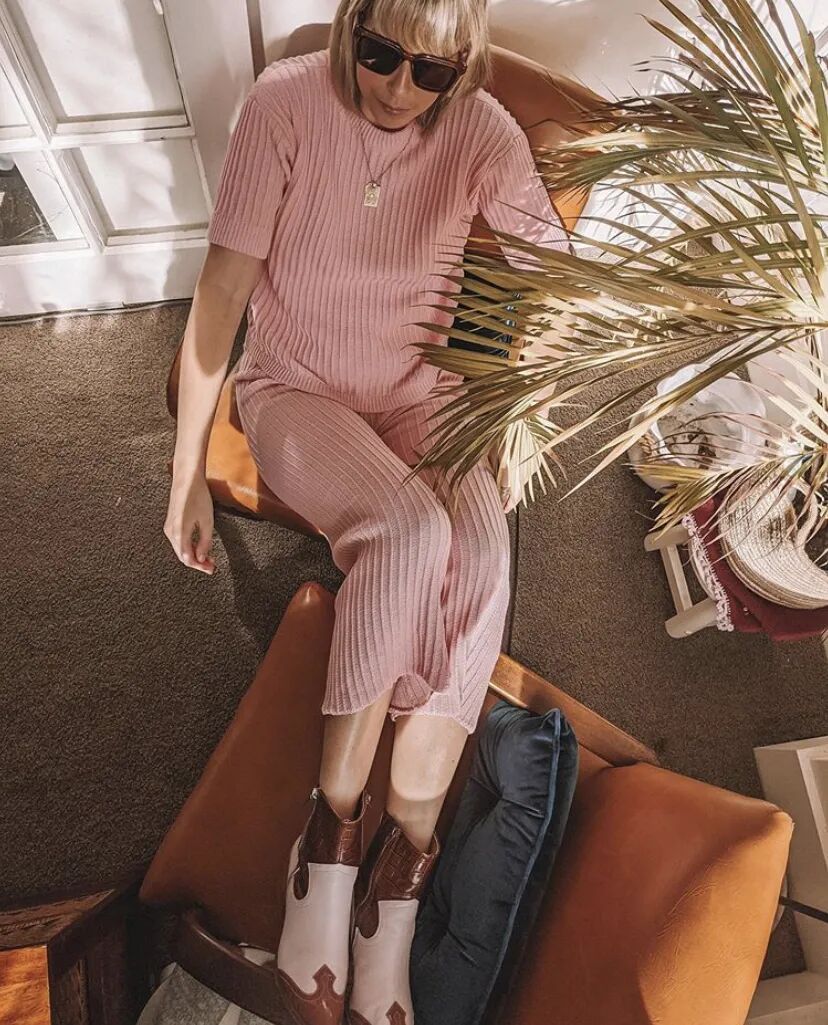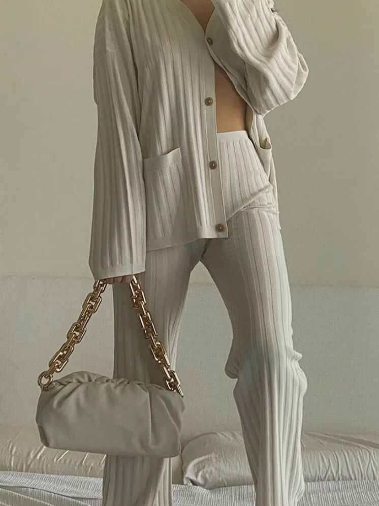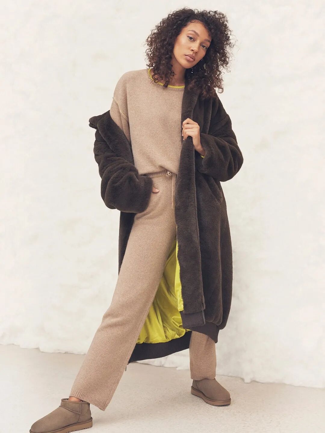 Totême则干脆做了套装,肉眼可见的温暖简直不要太心动,时尚博主Savi用这条针织裤搭配长款上衣,禁欲的高级美感瞬间扑面而来!