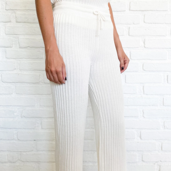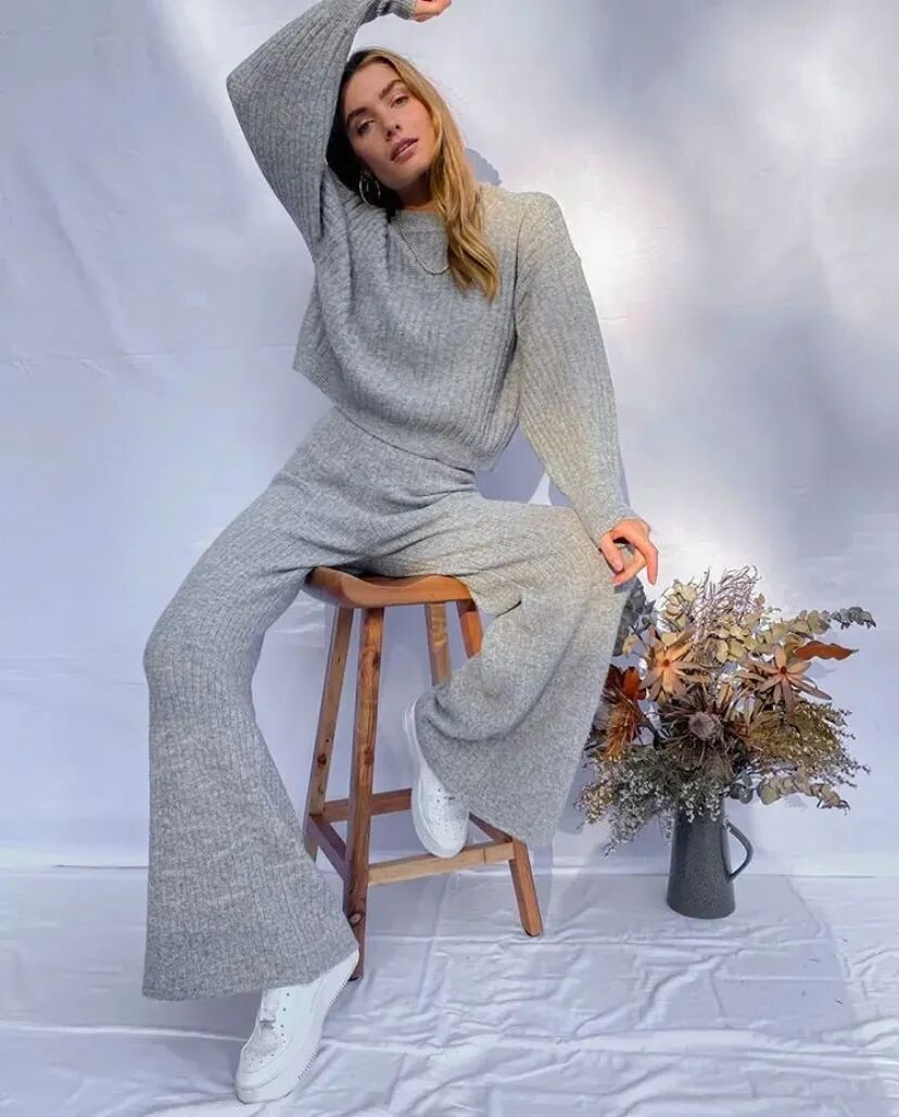 除了这种束口针织裤,很多阔腿板型的也成为了品牌推出的重点,作为懂女性的Victoria's Secret,分别推出了两条色彩不同的针织裤供大家选择。