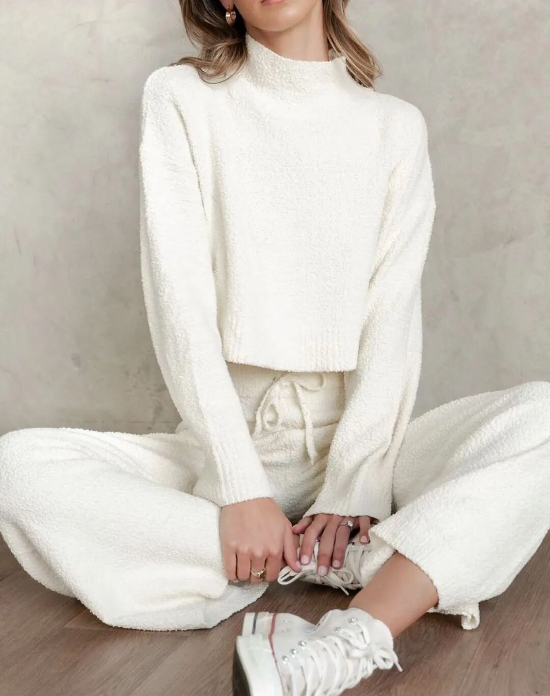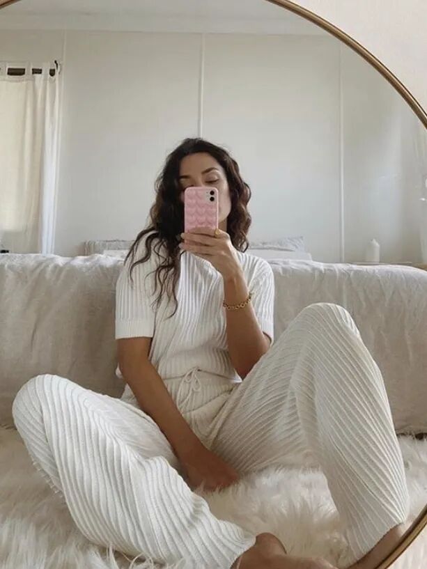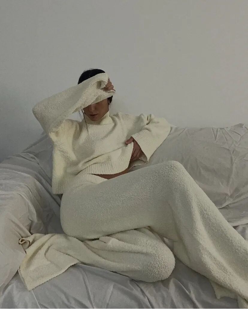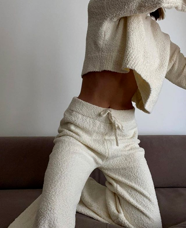 比如博主Noy Gamliel身上这款由短绒毛线织成的Cream Pants表现力就足够优秀。