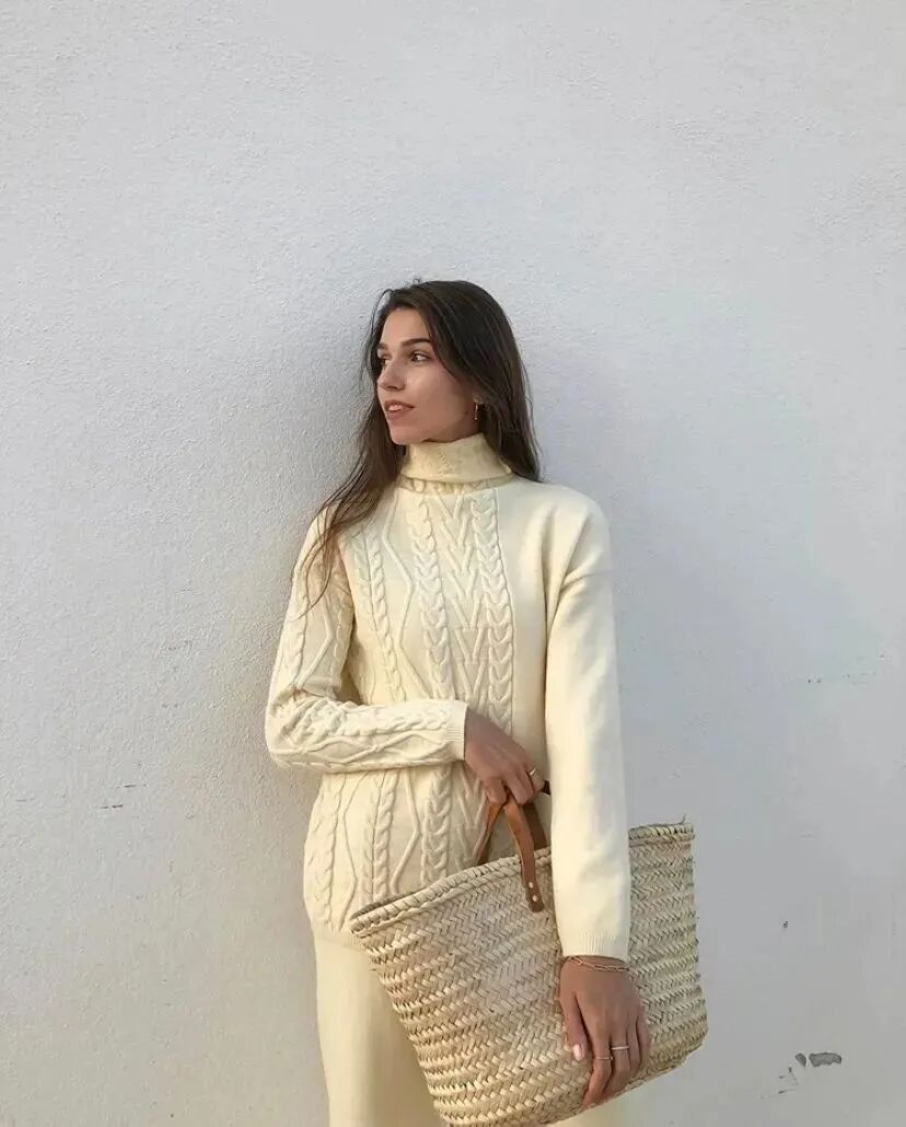 时装博主Vitaliia这条白色针织裤来自它家Sabo系列,质感满满的纯白针织裤绝对是hold住气质的必备单品!