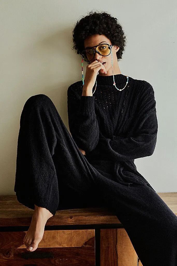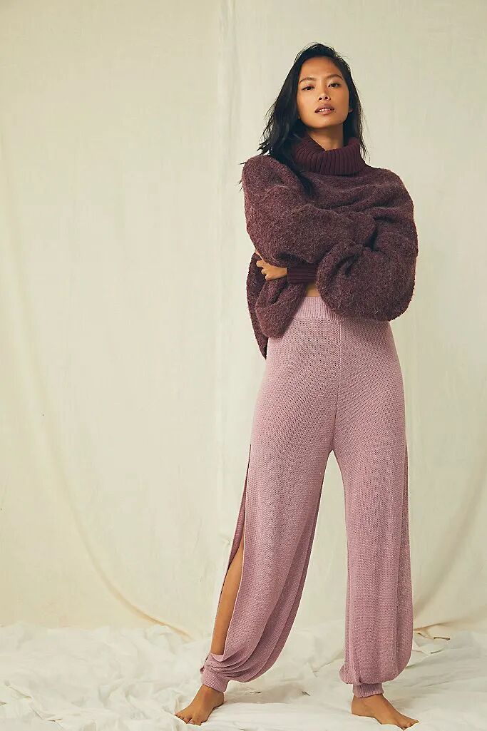 以舒适、自由为主题的Free People也是将针织裤玩得很溜,设计师将特有的波西米亚风与嬉皮风相互碰撞,象征着自由、浪漫、舒适的风格就此展开。