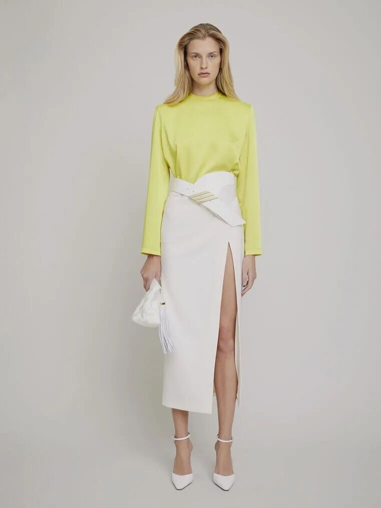 The Frankie Shop夏天用垫肩Tee刷屏,到了秋冬垫肩单品照样一个都不少。长袖和裙子都没有复杂的设计,仅以Tee作为设计基调,推出各种颜色的朴素垫肩款,简约百搭的设计搭配什么都游刃有余。