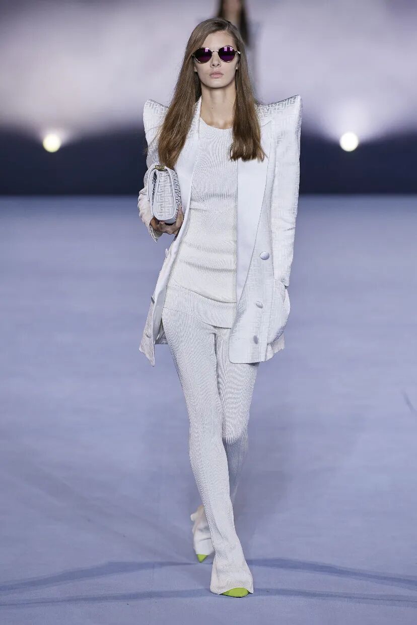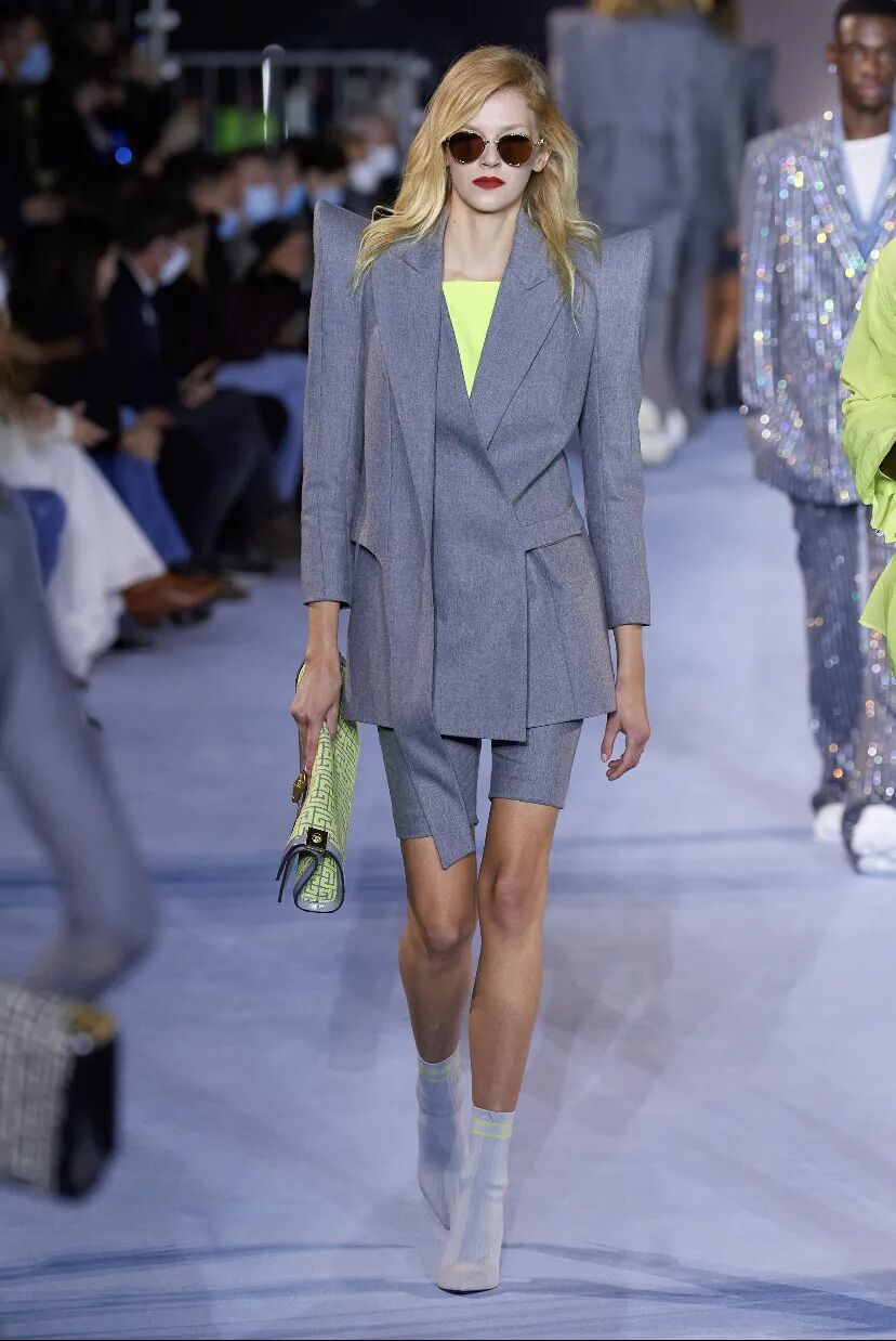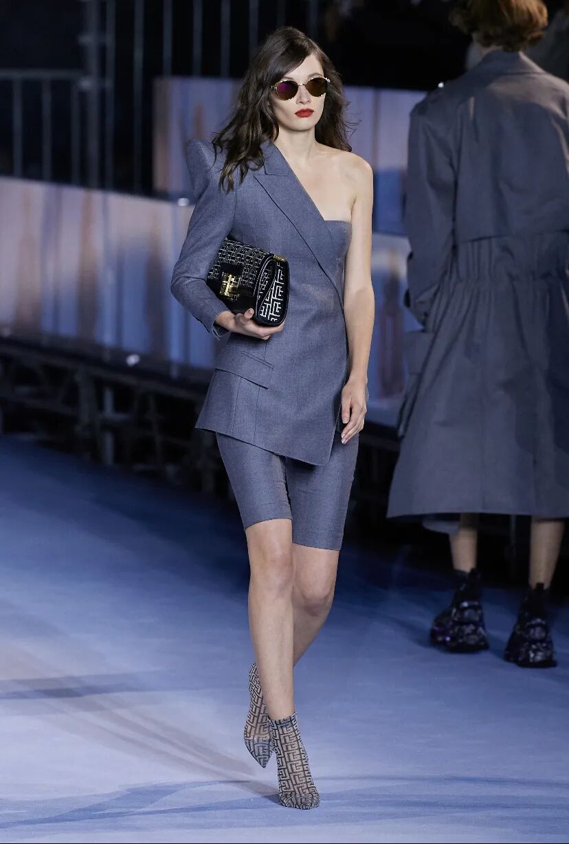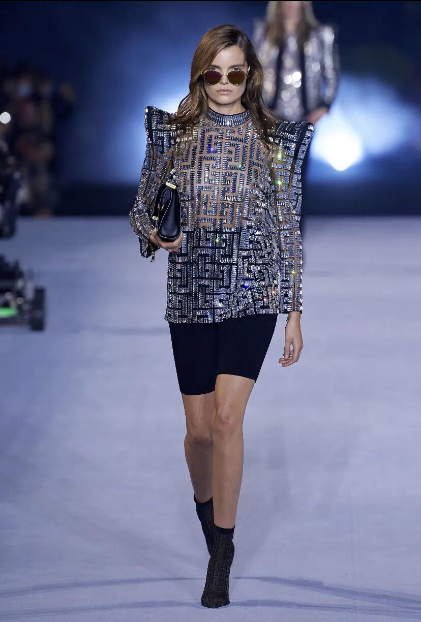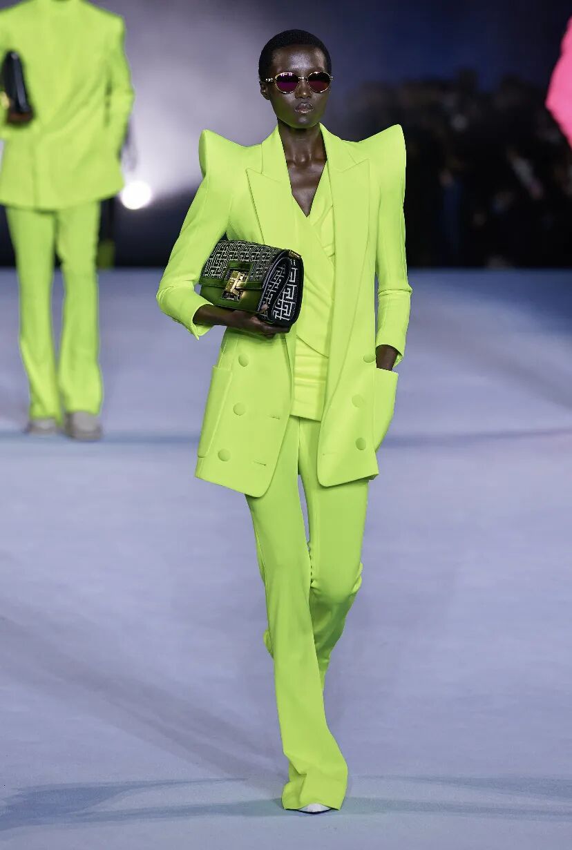 垫肩设计可以说融入了BALMAIN每个系列的DNA里,2021春夏系列就直接嚣张到把垫肩设计几乎用在了每件衣服上。