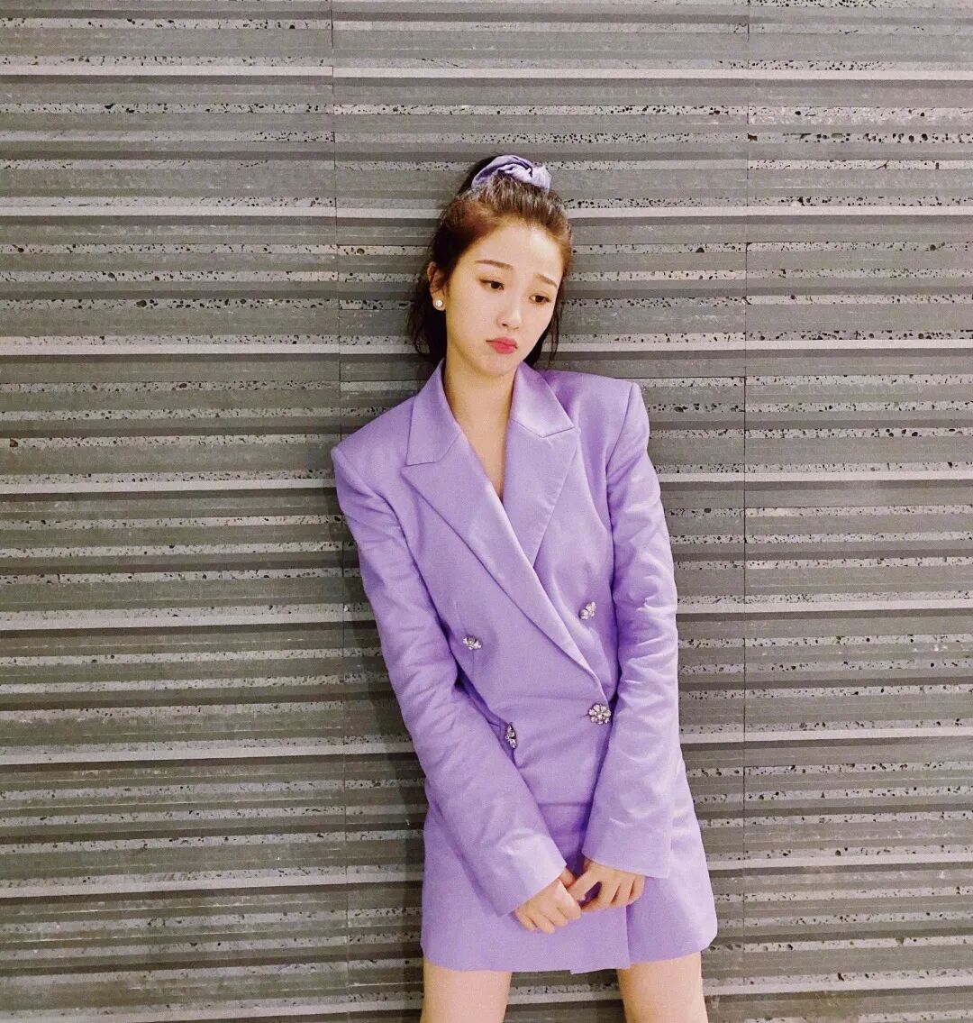“小作精”虞书欣私服穿搭是很多姐妹们的取向狙击,化身娇滴滴的香芋女孩儿可爱💯,上身的这套The Attico紫色西装裙被带火后大家纷纷求同款。