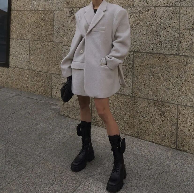 德国时尚博主Leonie Hanne打卡频率也不是一般的高,翻翻她的INS,十件有九件都是垫肩设计,不管是皮衣还是大衣都能被她瞬间穿出一米八的气场。