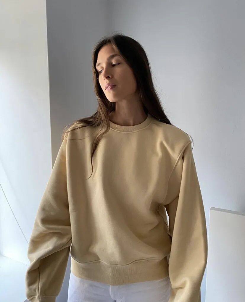 连卫衣也都推出了垫肩款,一件普普通通的纯色卫衣,加入了充满设计感的垫肩后,让过于宽松的卫衣变得更有型了,特别提气。