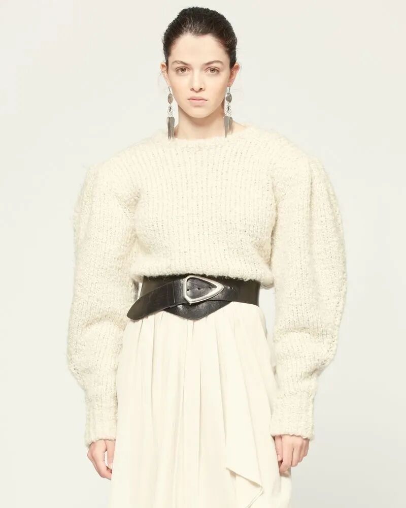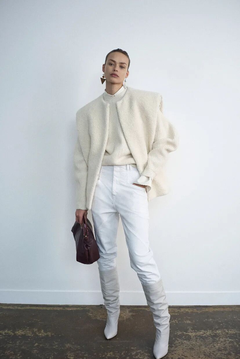 看上去就无敌温暖的垫肩毛衣是Isabel Marant的重头戏,相当火爆,经常是断货到没朋友的那种,山羊绒和绵羊绒的双重保暖,加入垫肩设计后刚柔并济,立马拥有迷人的双倍大女人气场。