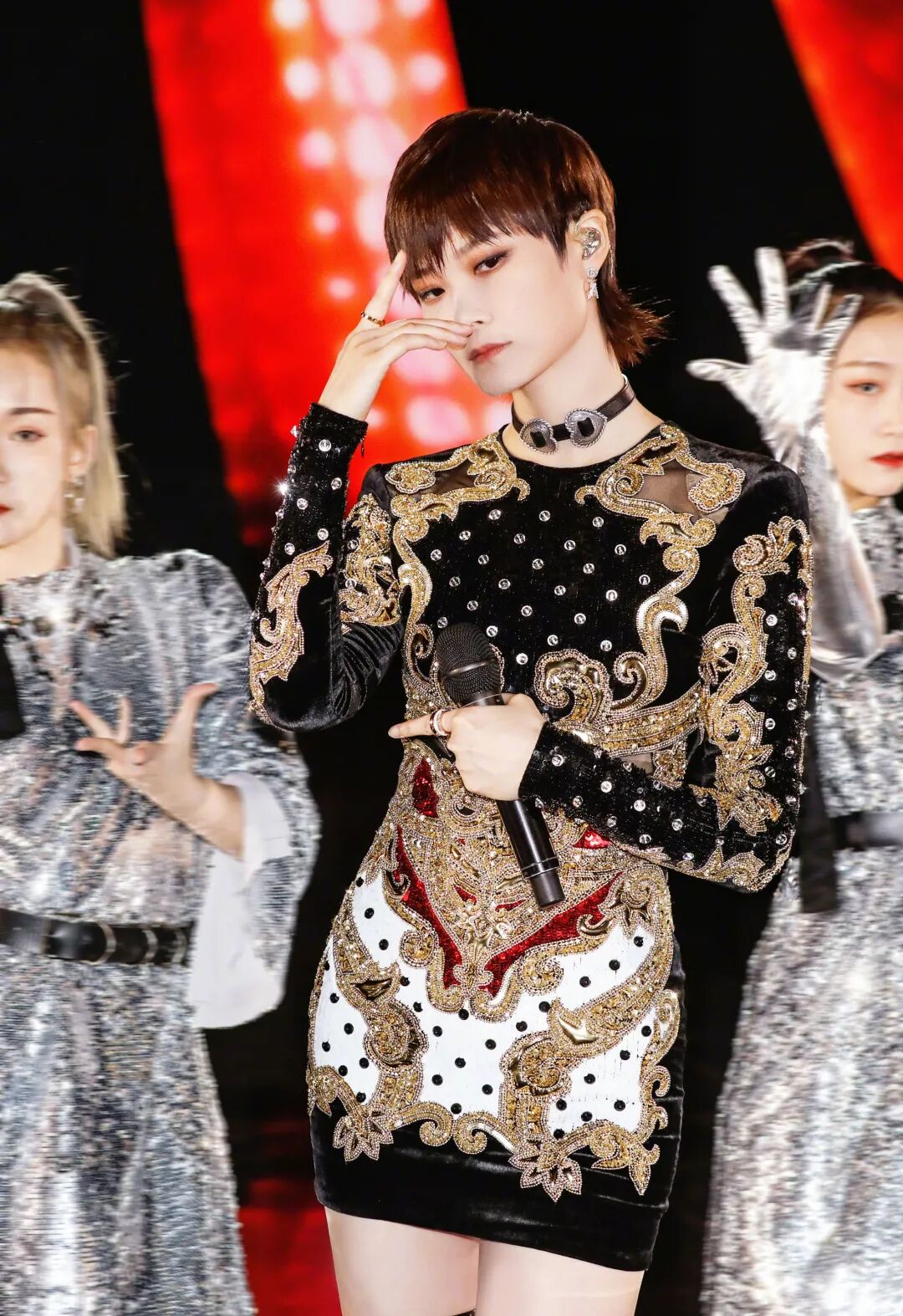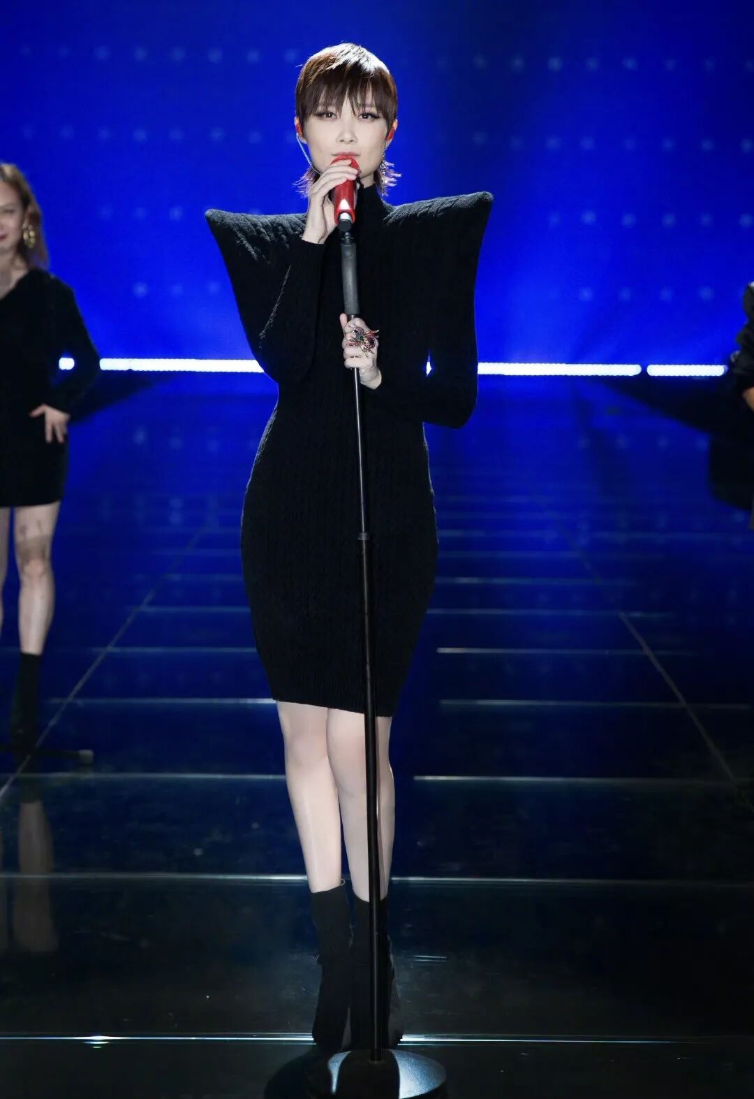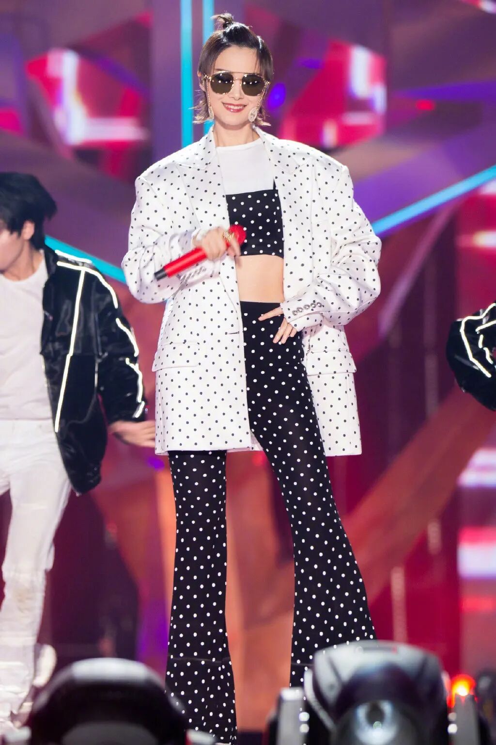 紧接着就被春春的这套西装惊艳,一身黑白波点复古又摩登,有生之年看到了姐姐的马甲线,值了!