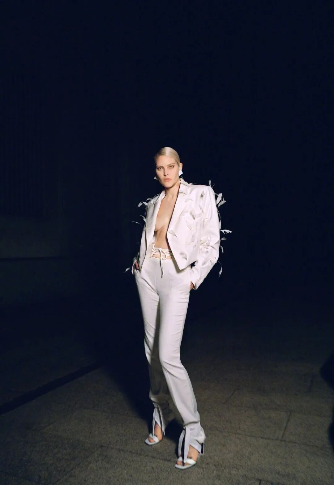超模Elsa hosk一直是它家的铁粉,经常出镜穿Modus带垫肩设计的衣服,从西装外套到针织连衣裙,利落的裁剪把她本就完美的身材发挥到了极致。