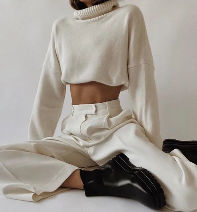 秋冬精致的垫肩毛衣平时自带冷淡高光,伶俐的轮廓曲线也比较符合我们亚洲女孩儿的身材,有时候太高的领子埋没了脖子线条,但是有了垫肩的加持,分分钟打造直角肩,拉长了脖子的视觉效果。