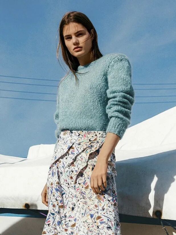 这个冬天要拥有最宽松的毛衣和最细的腰,Frankie Shop家的垫肩毛衣也可直接跳坑,无形之中就修饰了肩部的线条,加上露腰的设计更是个改变视觉比例的好方法。