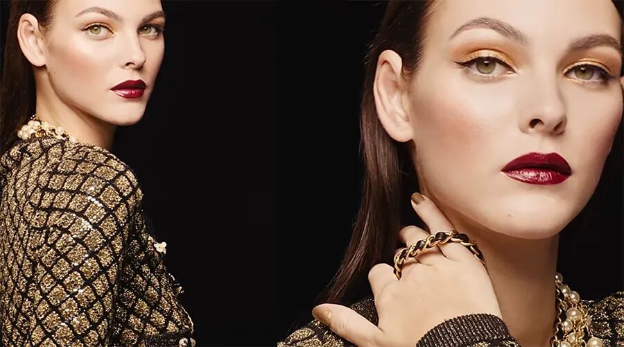 刚刚上线的Chanel Beauty Holiday Collection 中,Vittoria Ceretti再度出镜广告大片。今年的圣诞限定彩妆,以永恒的黑金与链条为主题,独特的金色眼影尽显神秘。面部护理则可选用奢华精萃小金砖面霜,新增的保湿性能,让我们在干燥的气候下,也能时刻保持丰盈光泽的面部轮廓。