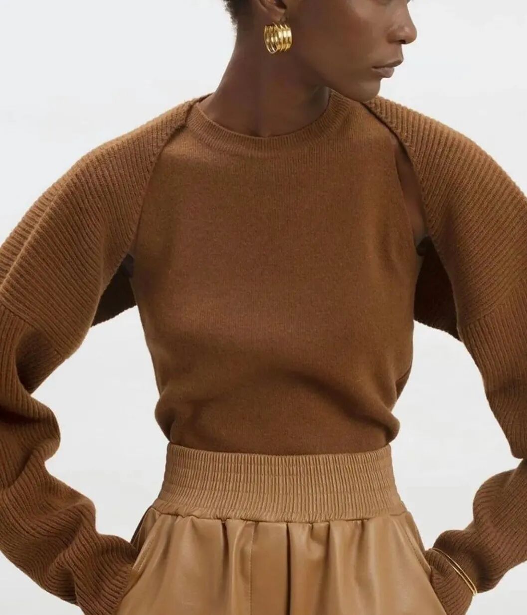它家针织衫一向是各有千秋,无论是肌理感还是廓形设计都独树一帜,这款坎肩灯笼袖针织衫设计感十足,很好地拉长上半身比例,休闲舒适的同时也带了点“小心机”。