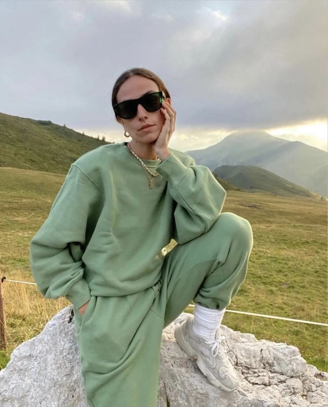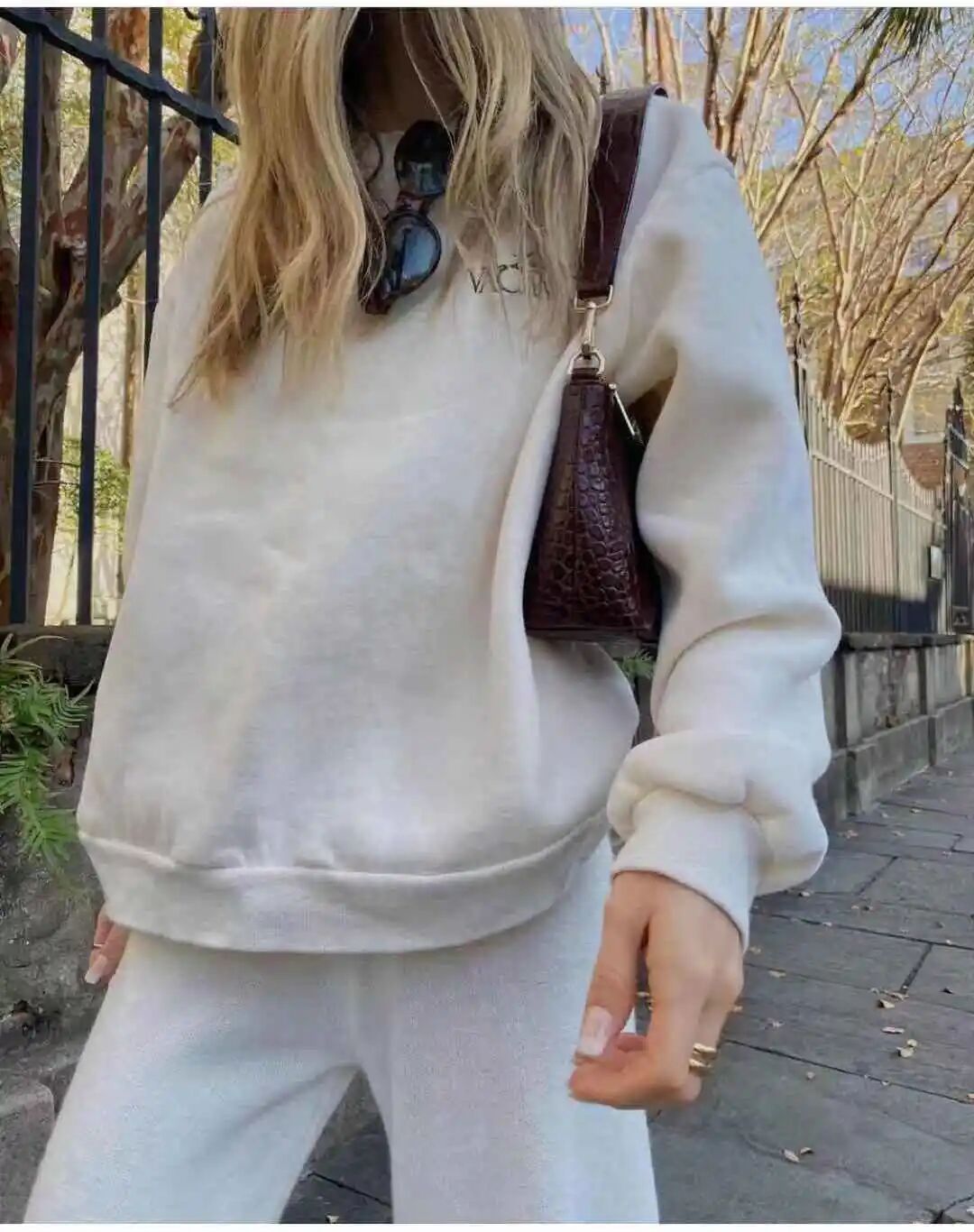 卫衣+裤子的运动套装,成为很多时髦博主的打卡选择,超级适合懒人,居家、日常出街穿都很OK,还会有种漫不经心的时髦调调。