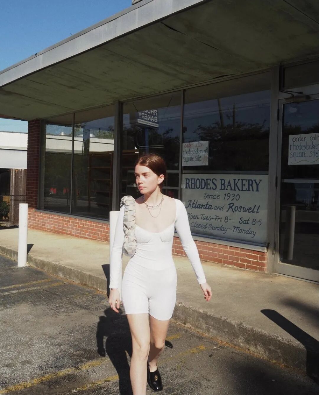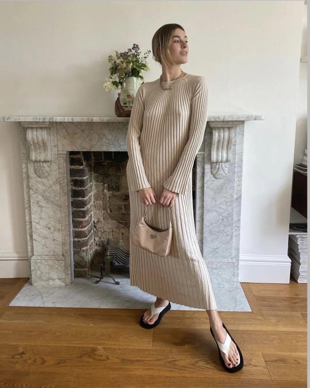 其实针织裙不像印象中那么难穿出门,时装博主Molly Blustein一套白色连身裤装高级感十足,搭配正装皮鞋,休闲优雅造型便信手拈来。