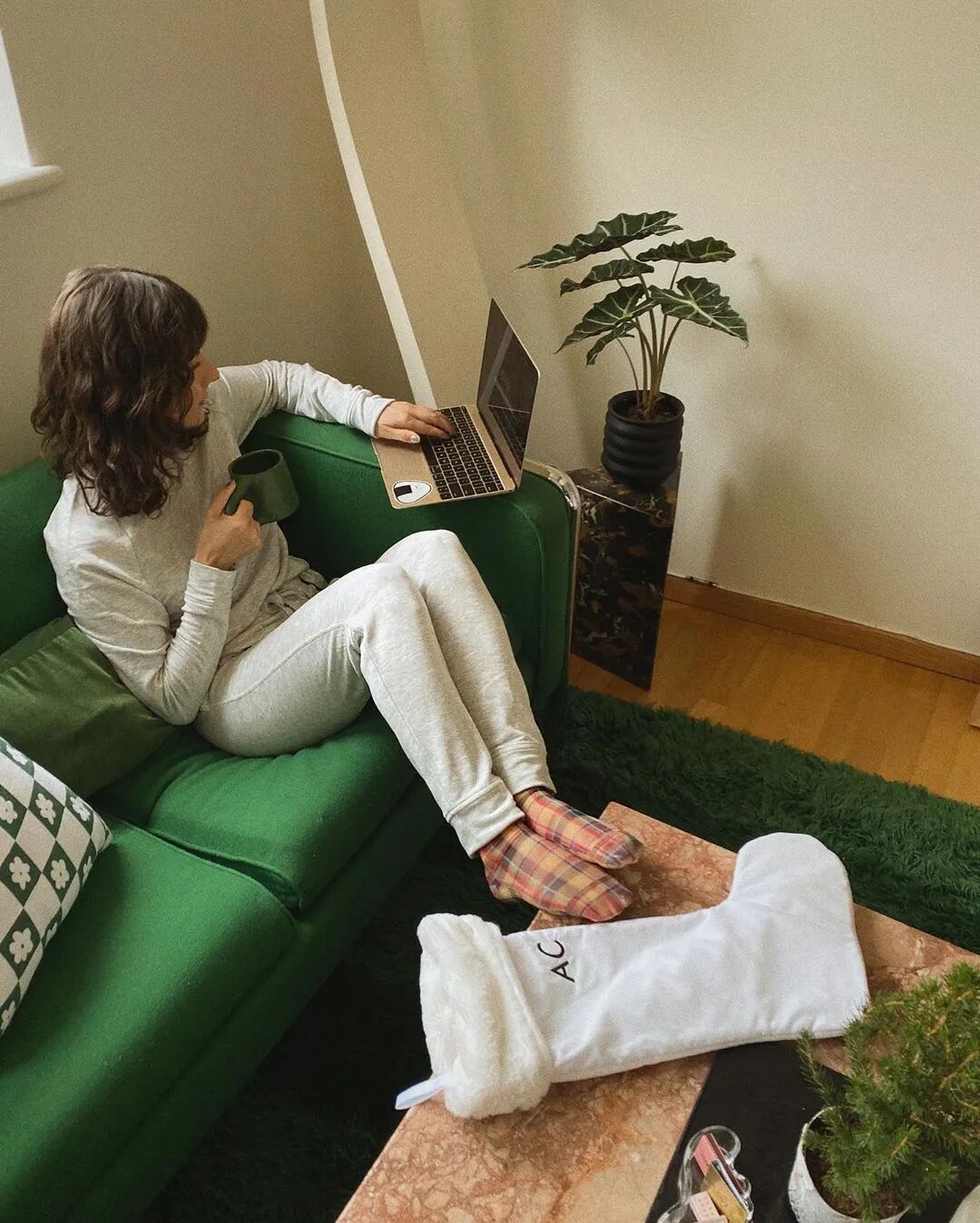 由毛线编织而成的的毛线裤也是打造Athflow风的一把好手,不然怎么说时尚是一个轮回,万万没想到曾经比秋裤“地位还低”的毛线裤,有一天真的可以和优雅挂钩!
