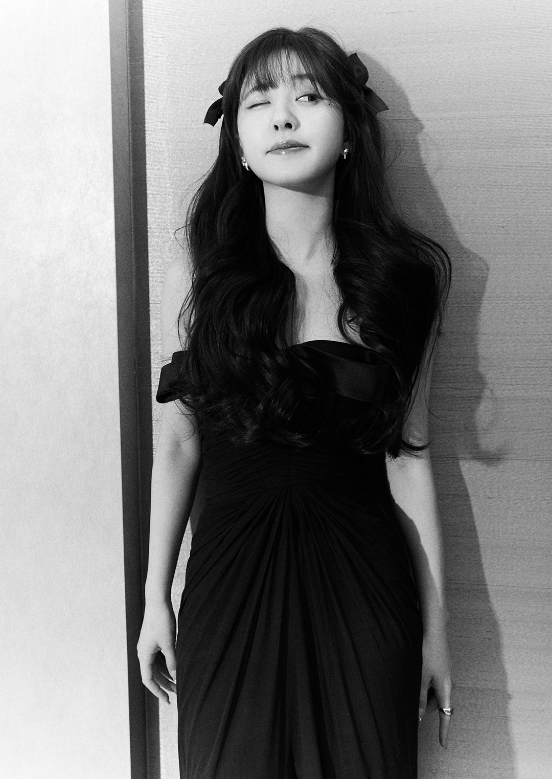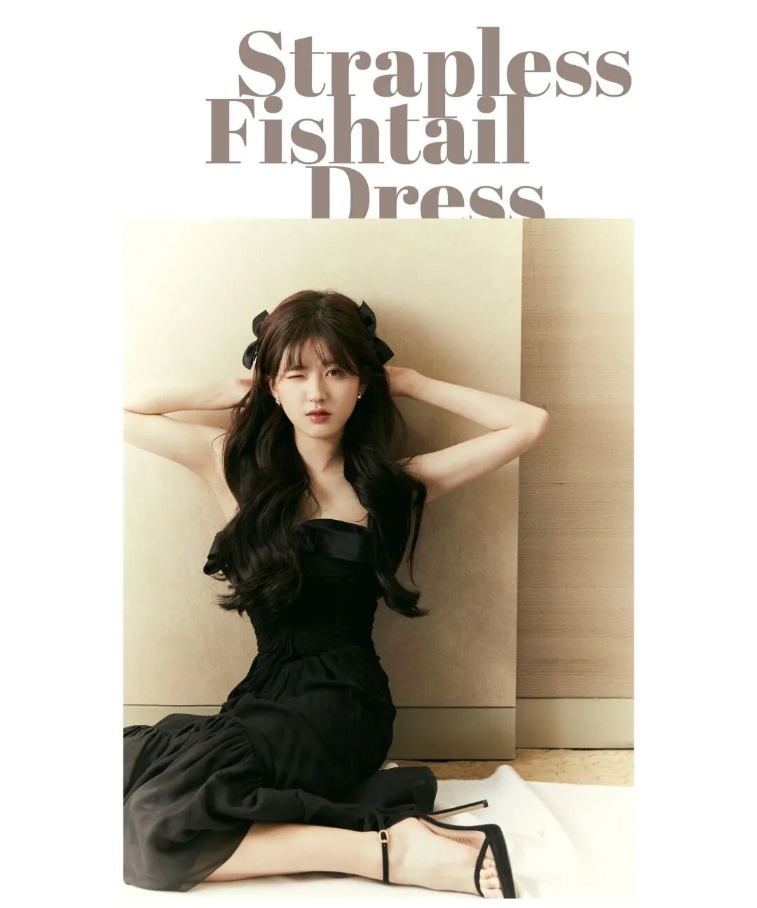 同一个夜晚,赵露思也用一条黑色贴身裙走起了又甜又野的路子。一身轻盈的鱼尾裙,与蝴蝶结一起上演了“肉丝”式的甜辣风。