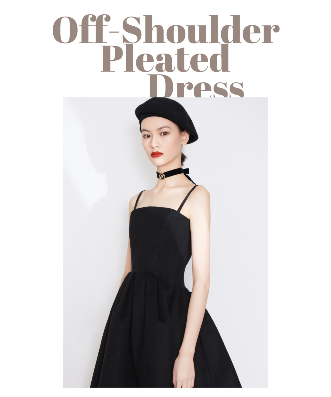 抓褶收腰的短裙剪裁,以及裙摆下方的阿玛尼logo让小黑裙充满高级感不至于太街头。马丁靴和贝雷帽完成了整身的文艺味。