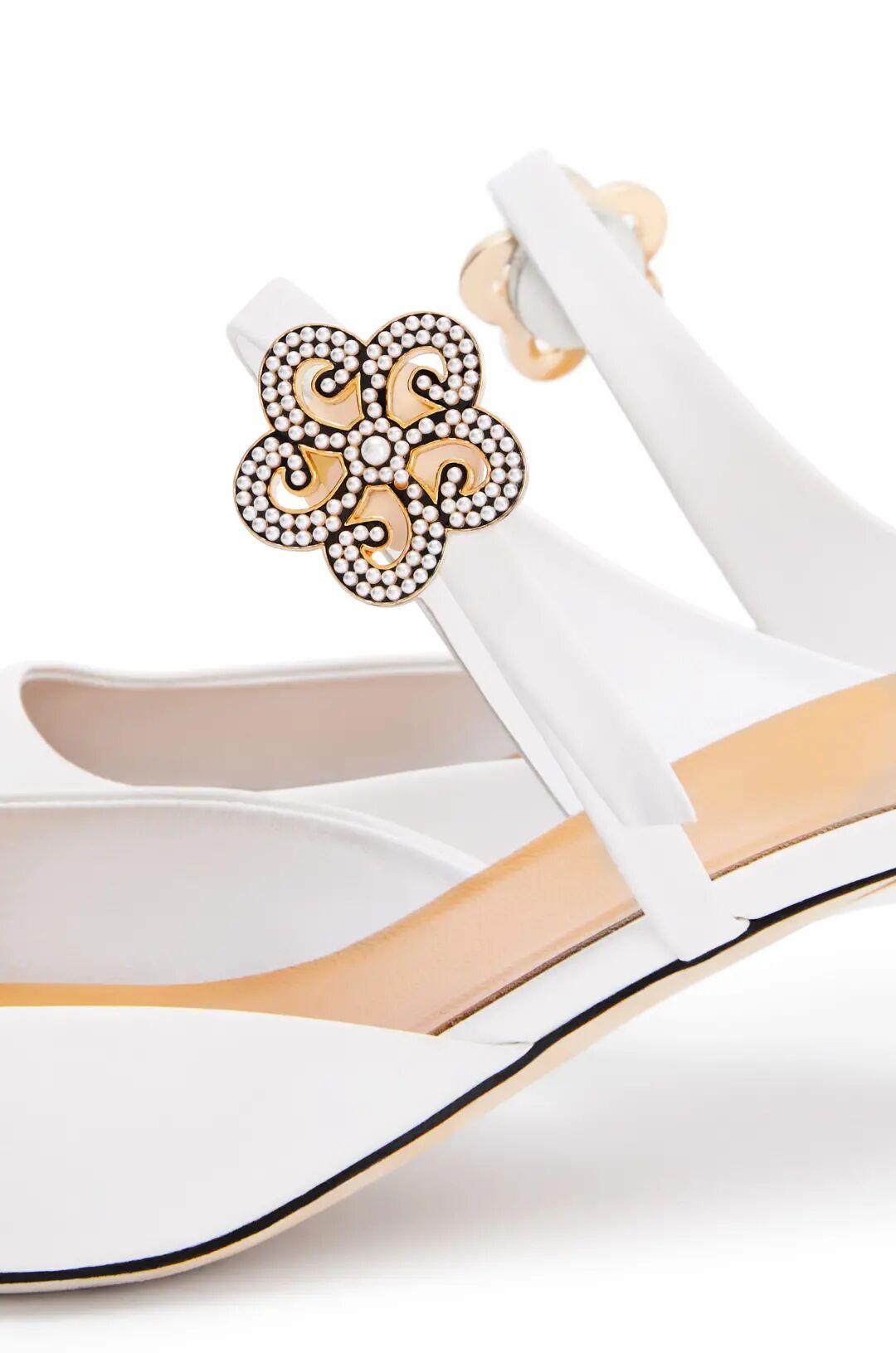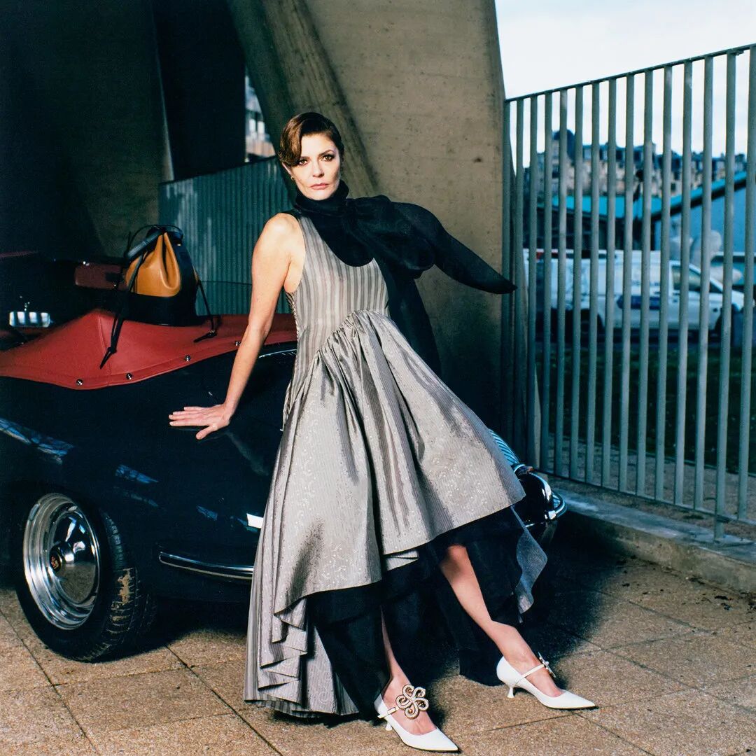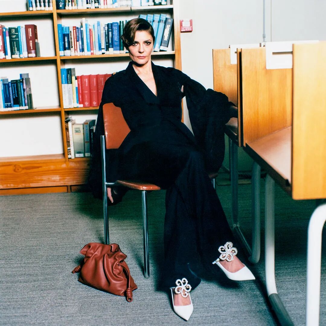 不得不提一下春夏秀场上芭姐身边公认最令人一见钟情的鞋子,这双尖头小猫跟。⬇️出现在Raf入驻Prada的第一季大秀上,必然有些来头。这双Slingback露脚后跟有装饰带的设计,显腿长一绝。