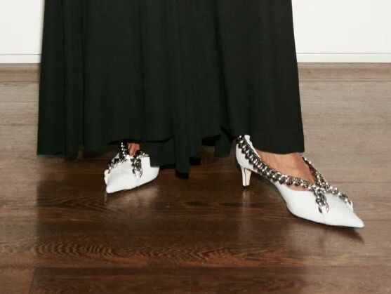 还要更前卫?看看博主Jen Azoulay脚上的这双Bottega Veneta 2020早秋新款,这个鞋尖有没有戳中你的心?这款尖头猫跟鞋可是芭姐的最爱,整体鞋身被分为四个部分,从鞋头延伸出的绑带把脚背上的四条短带编织在一起,皮革的编织融合了街头元素,柔软又时髦。这双猫跟鞋在时髦精白百何的穿搭33天系列照片里也出镜了,她搭配了休闲上衣和牛仔裤,尖尖的鞋头更显得她的腿部修长,虽然是黑色,但是绑带的设计使脚背露出更多皮肤而不显得沉闷。除此之外Bottega Veneta还出了一款猫跟鞋MADEME,鞋面经典的金色搭扣设计结合春日淡雅的白色和黄色,简直是出门拗造型的不二选择!不得不说,鞋后跟松紧带的设计太贴心了!这个高度既能巧妙地修饰腿形,又能不磨脚,还有比这更完美的鞋型吗?总而言之Bottega Venata 这次的设计真的很心水了,春天快点来吧,芭姐等不及要穿着它出门拗造型!可购于:www.bottegaveneta.com可购于:www.bottegaveneta.comValentino的当家鞋款Rockstud也升级啦!在2021春夏成衣秀上,Valentino推出了升级版Rockstud 2.0。它的新名字叫RomanStud,这次采用了大铆钉搭配宽绑带包裹脚踝的方式,尖鞋头很好地拉长了腿部的线条,配上小猫跟俏皮又可爱。脚踝处的大扣环使脚和鞋更贴合,也更加稳固。另外一款皮革猫跟鞋鞋尖饰有Valentino经典的编织玫瑰图案,有白色和红色两种颜色,每片花瓣层层叠叠从花心绽开,搭配脚后的细绑带,很适合作为情人节的礼物呢!德国博主Leonie Hanne 脚上的这双黑色猫跟鞋可以说是近期爆款了,黑色logo缀饰在鞋尖,哑光黑更突显皮质细腻,是怎么搭都不会出错的类型。礼服专家Giambattista Valli 在2021早秋系列里也推出了一款很特别的尖头猫跟鞋,黑色鞋尖采用透明设计点缀黑色蝴蝶结。Giambattista Valli 2021早秋系列喜欢绑带鞋的姐妹一定不要错过这一款,绑在脚踝前面或后面形成两种不同造型,再搭配网格丝袜也太飒了!Giambattista Valli 2021早秋系列想尝试走小性感风的集美可以尝试入这款鞋,甜美优雅的同时还有点酷!Victoria Beckham可是从未停止过对时尚的追求,这次2021春夏系列是关于自由和探索的,将系列根植于现实生活并以居家穿着方式为灵感,创造了一系列腰部和腿部没有松紧的休闲服饰,其中与金属元素的结合也是特别有趣。金属配饰从去年就很流行,Victoria Beckham 把金属链条放大并运用到极致。系列里有一款金属风猫跟鞋特别亮眼,这款鞋的特别之处在于鞋尖上的两个圆环,分别牵引两条粗链条交错在脚背并在脚后连接。金属的重量感和白色皮革搭配简直完美!Victoria Beckham 2021春夏系列一向特立独行的Maison Margiela在这一季春夏的成衣秀上又有了不俗的表现,John Galliano在展示衣服本质的同时,用一场不俗的表演展现出设计师脑海中的场景,用探戈的张力把我们带入南美哥特式的婚礼悲剧中。模特在雨中的舞蹈把服装的细节展现,构成了一幅幅精美的画面,也让人沉醉其中。其中模特穿着的猫跟鞋由威尼斯锦缎制成,黑色的线性笔触印在鞋侧,仿佛大理石的纹路,随着模特的动作渐渐和雨中场景融为一体。Maison Margiela 用探戈诠释了一种和谐,充满活力和激情的舞蹈是一种宣泄,它释放了旧的精神,激发了前进的欲望。这种强烈的戏剧张力让人不得不佩服John Galliano 把艺术和设计结合做到极致。这么美轮美奂的鞋,想象一下穿着它走在雨中是什么样呢?看完这篇,新年战鞋你准备入哪一双?在评论区告诉芭姐吧!©版权声明:时尚芭莎网编辑时尚芭莎,本文系时尚芭莎网独家原创,如需转载请注明出处。