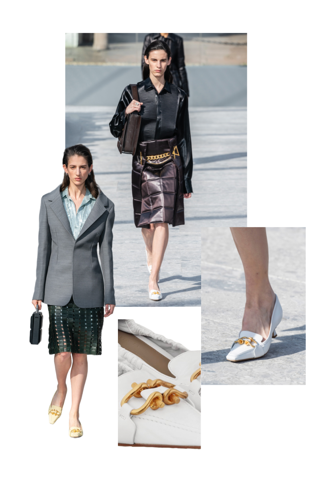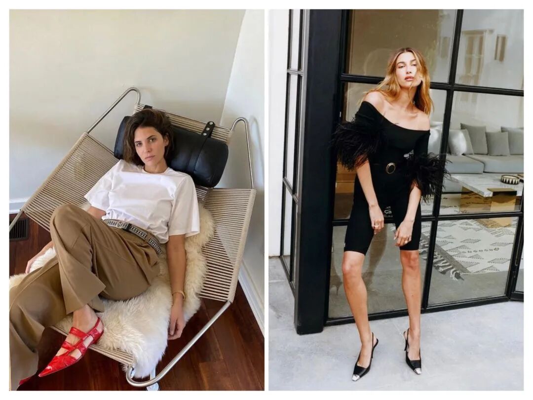 不过距离人手一双的初代猫跟鞋走红已经有三四年的时间了,为什么猫跟鞋又火了?这就得看看今年春夏秀场上的小猫跟3.0到底有什么过人之处。比起从前的猫跟鞋,猫跟鞋3.0尖头+平鞋口的款式,延续了乖巧好走的特点,在此基础上鞋跟更低,鞋头更延长更尖锐,时髦气质更上一层楼。最近时尚博主Leonie Hanne、Hailey Bieber早都穿上了升级版的尖头猫跟鞋,是不是时髦又不过分用力?春节来临,这波装乖鞋潮流各位时髦精必须赶,都有哪些牌子出了芭姐早就帮你盘点好了,快跟上吧!⬇️说到尖头猫跟鞋,今年第一个想到的绝对是Prada 2021春夏系列的鞋款,这是Raf Simons和Prada合作的第一个系列,Prada的招牌猫跟鞋也以一种全新的姿态亮相,全面精简,重塑优雅。猫跟鞋自带的复古优雅气质,遇上运动鞋舌的独特设计,形成一种街头时髦感,这波混搭不得不佩服Raf Simons的鬼才想法。模特康思佳在参加Prada 2021秋冬男装秀时已经穿上了这款鞋子,一身淡粉色绸缎套装搭配浅蓝色经典三角形logo尼龙尖头猫跟鞋,清新又贵气。仔细看这款鞋的侧边还有更特别的设计,把看似违和的运动鞋底作为猫跟鞋的包边与尼龙鞋面合为一体,表达了Prada这一季不被定义,特立独行的理念。Prada在细节上做得真的绝了,其中一款鞋面上Prada经典的三角形Logo用编织的三角玫瑰花替代,简约的设计让人欲罢不能。糖果色的鞋舌或者鞋身能为全身Look画龙点睛,搭配裙装或裤装都很个性。各种颜色和款式能满足各式场合的不同穿搭需求,不穿恨天高也可以轻松拗造型,职场的姐妹们穿着上班不累又时髦,周末参加Party选择亮色,各种场合随意切换。Prada新猫跟绝对是2021年的爆款,集美们可以闭眼入啦!Saint Laurent 最新发布的2021春夏系列塑造了为自己而装扮的女性新形象,女性的干练和性感在这个系列中被体现得淋漓尽致。最吸引眼球的单品要数模特脚上极具辨识度的平口尖头猫跟鞋。这款猫跟鞋的鞋跟要稍高一些,延续经典的红黑两色。亮面蛇纹皮革搭配金属鞋头的设计,金属鞋头在走动时随机折射光线,在明媚的阳光下简直就是行走的荷尔蒙。Hailey Bieber早早就穿上了来自Saint Laurent 2021春夏系列的黑色连体针织裤,搭配尖头猫跟鞋,慵懒中透着极致性感。Lily Collins也穿上了这款猫跟鞋,搭配黑色丝袜更显腿长,瞬间变身摩登女郎。Saint Laurent这一系列以“共赴自由”为名,更是女性追寻自我的旅程,利落的线条和金属的冷艳带给人高级的时髦感,创意总监Anthony Vaccarello把黑色温柔运用到了极致。Loewe 2020秋冬的这款漆面单色珍珠花朵猫跟鞋真的超级精致!Anderson这一季将超现实主义的细节融入了设计,幻化成一朵张扬个性的珍珠花绽放在脚背上。鞋面上的花朵由珍珠镶嵌在金色的鞋夹上,弯曲的花瓣造型精巧别致,放大的花朵和极细的绑带形成鲜明对比。这一季的大片由意大利演员Chiara Mastroianni演绎,她身穿Loewe秋冬系列卡其色风衣搭配镶饰花朵图案猫跟鞋,尽显摩登女郎的风范。Loewe这款小牛皮猫跟鞋非常适合正式的场合穿, 或者在外出购物时,5cm的跟让你轻轻松松美美地逛街。脚面上的绑带设计使鞋身与脚更贴合,也比露脚跟的设计更加稳固。想要低调点的集美们不用担心,还有一款迷你花朵的猫跟穆勒鞋推荐给你们。春季搭配风衣或裙装都非常可,绝对是换季的首选!04 Bottega Veneta