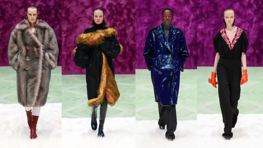 在Prada 2021秋冬系列中,人造皮草与亮片的碰撞,mini三角包与手套的组合,一切奇思妙想与思想火花都饱含惊喜。秀后的二人对话变为七人会谈,也非常值得一听。