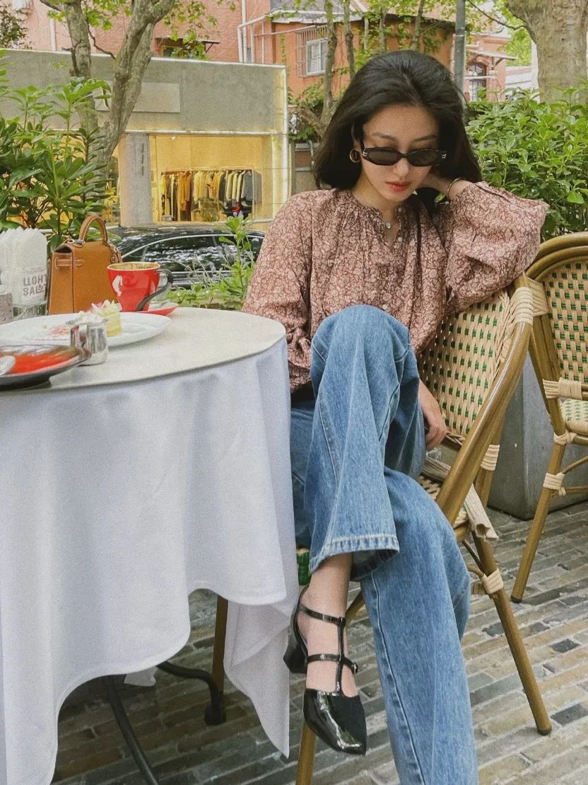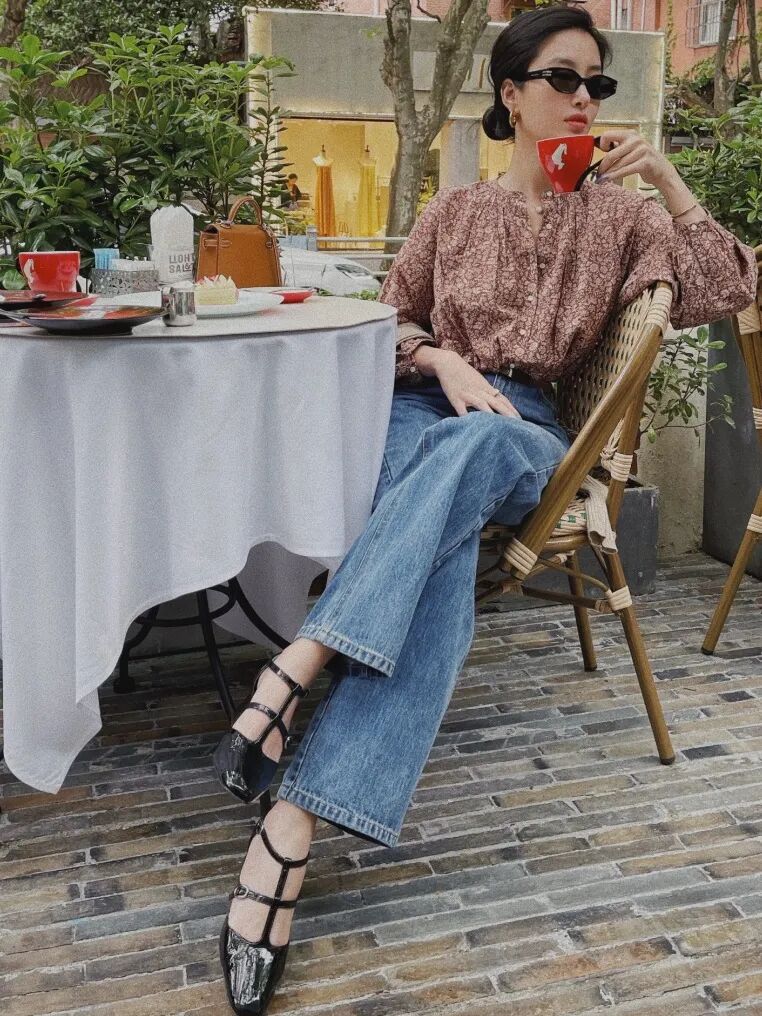 一直走文艺风的杨采钰,这次则是Pick了一双复古玛丽珍,恰到好处的小猫跟,将春日慵懒氛围拉满。