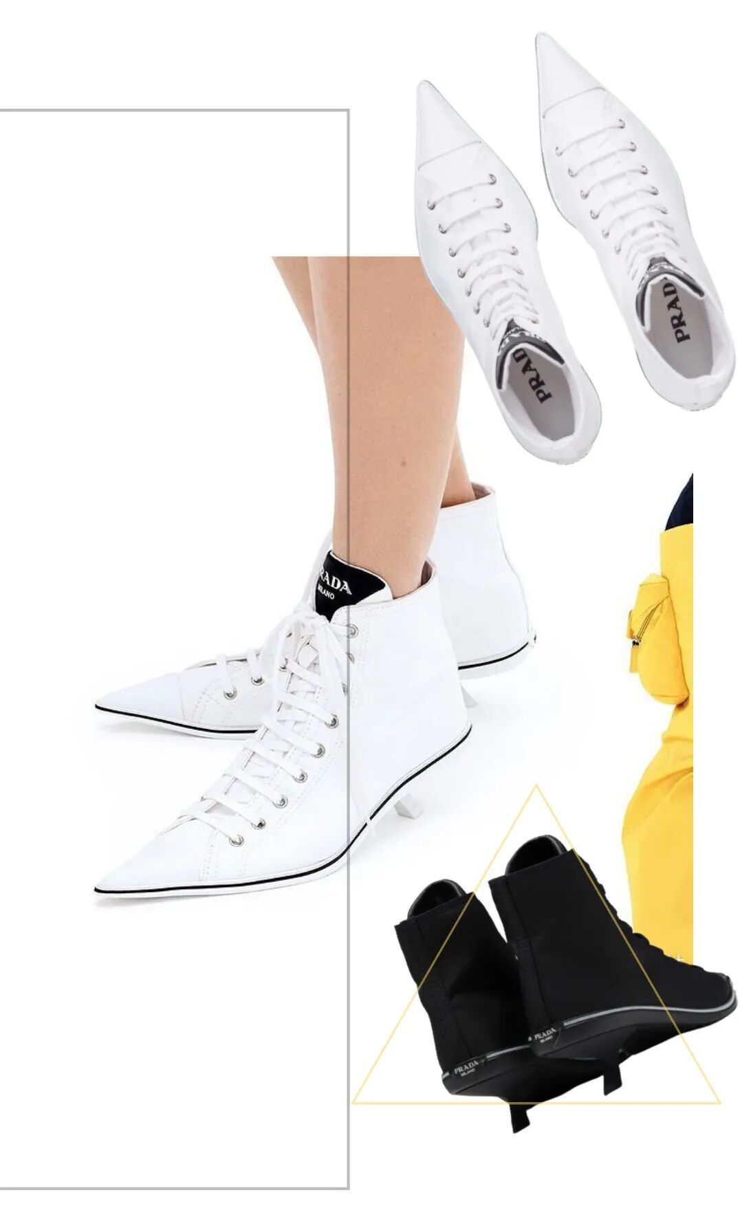这双尖头高跟鞋脱颖而出,成了2021年的必备款,从鞋檀至鞋面,将2021年春夏系列的科技感发挥得淋漓尽致,小猫跟与鞋尖特有的尼龙材质,同时也强调了趣味性。