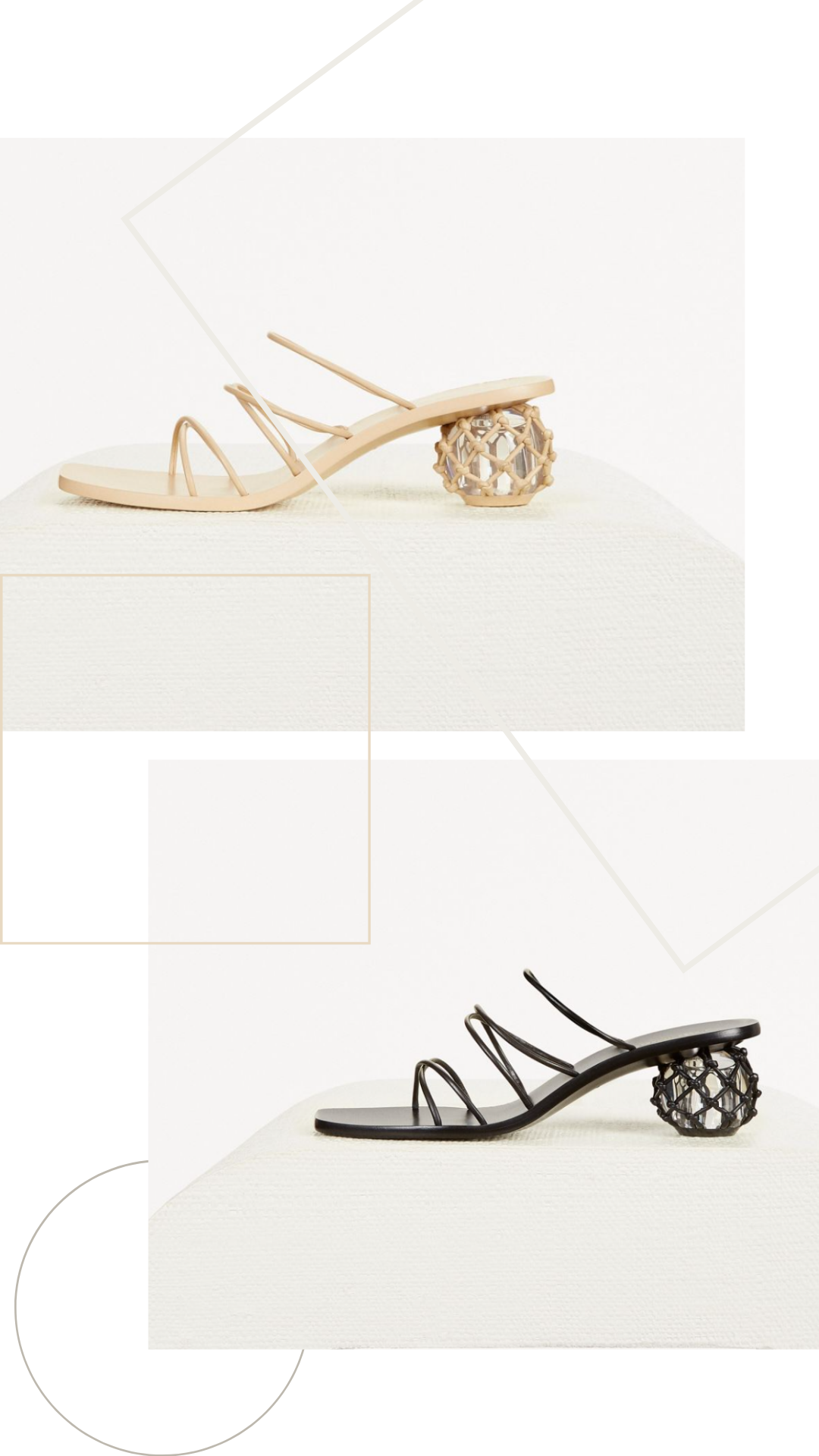 异形高跟与经典三角的巧妙结合成为春夏新款中不容忽视的存在,没有繁冗的设计,清爽简约的鞋型与轻盈的质地十分适合春夏拗造型。