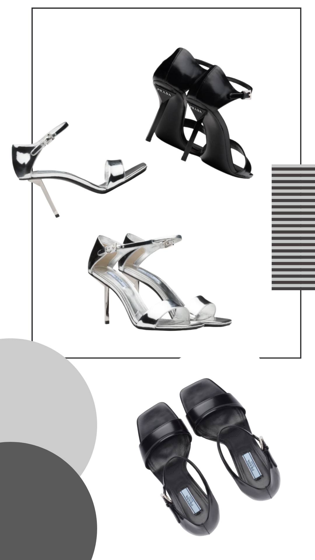 Prada leather款的基础凉鞋也值得一试。流畅又笔直的鞋跟线条,并配有极具未来感的金属配色,Girl Crush风满满。