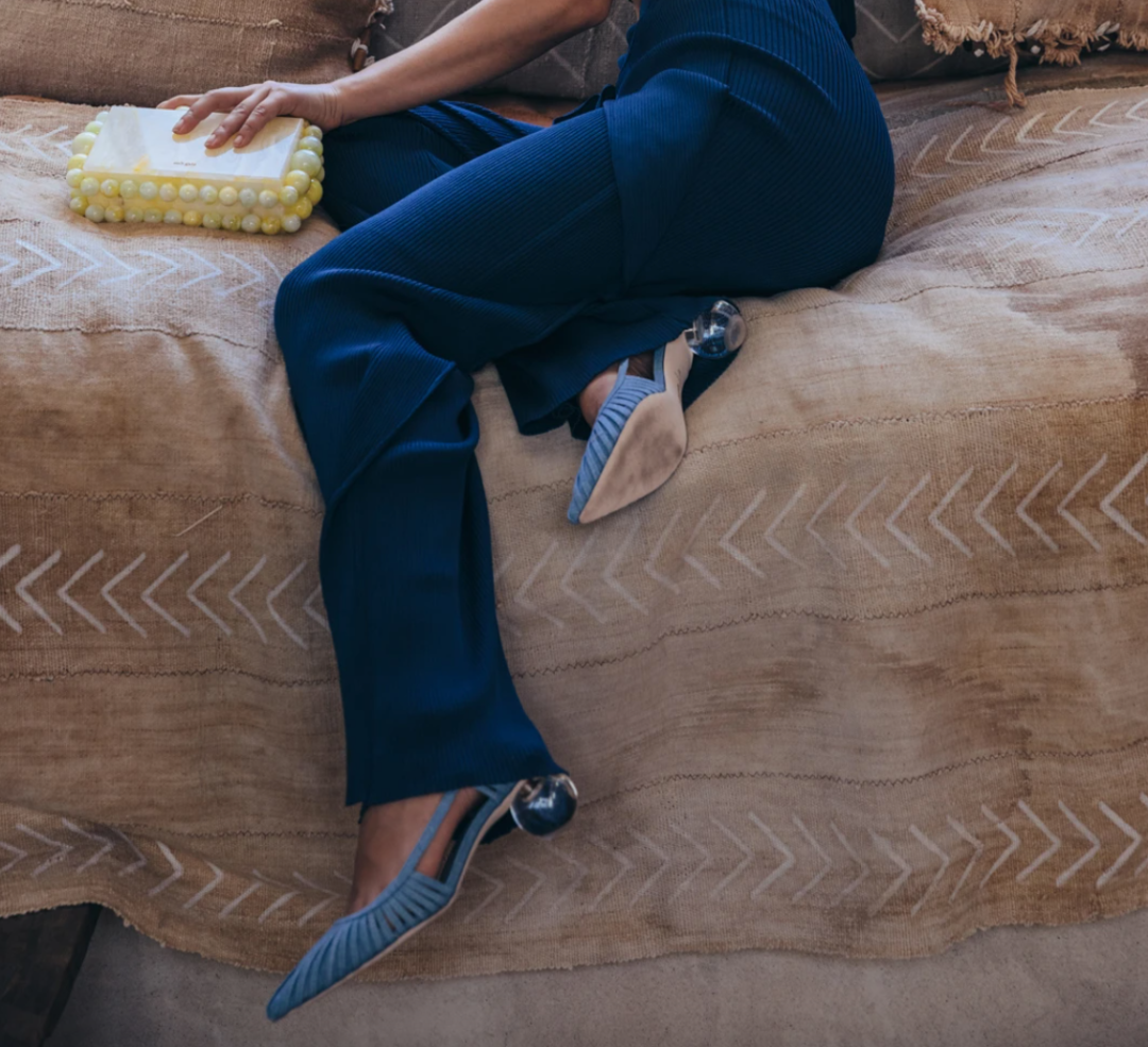 Ins博主们争先恐后晒的Alia Slingback在新的一季中以牛仔色回归,低跟的圆球设计更方便穿着,编织的镂空鞋面塑造了精细优雅的时髦氛围。
