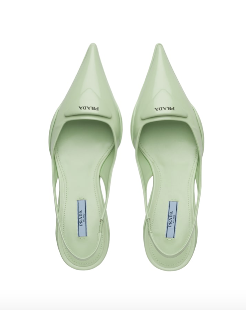 Prada标志性的三角logo以特别方式呈现在鞋舌设计中,鞋底延伸的线条与波浪底的独特设计,让这双高跟鞋熠熠生辉,配色也多以明亮、活泼为主,很适合春夏去穿!
