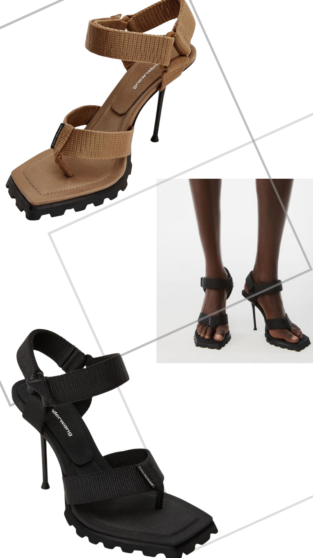 今年alexanderwang还推出了机能感满满的Julie Lug Sandal,结实的橡胶沟纹鞋底搭配可调节踝带搭配魔术贴封扣,成功做到将运动风和高跟鞋结合一起。