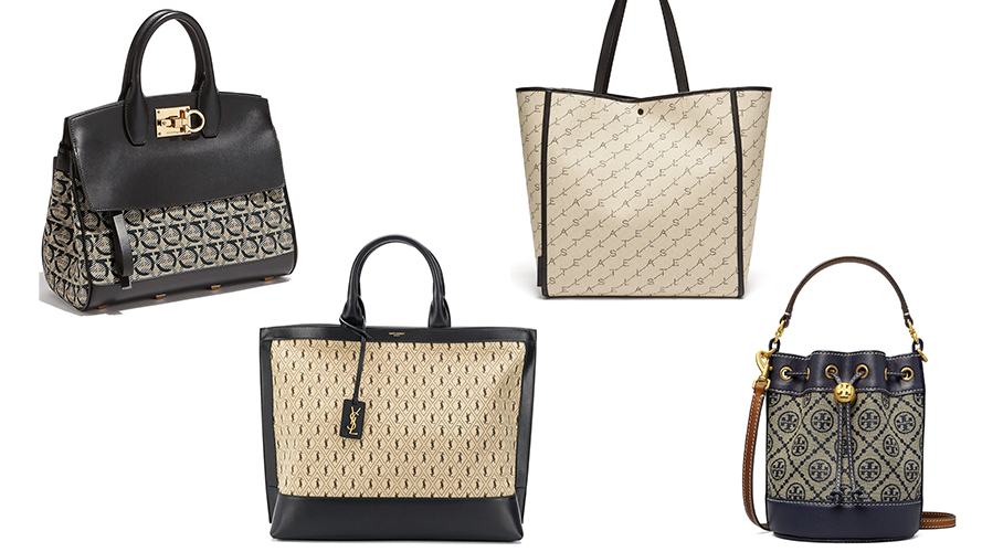 有些品牌本无押花,趁着风潮也开始自创。Gancini双钩饰扣被复制串联,成为Salvatore Ferragamo新纹案;Saint Laurent的Monogram-All-Over也是重复N遍Cassandre标识的成果;Tory Burch的T Monogram源于设计师的儿时记忆——荷兰纺织品图案;Stella McCartney的Monogram密恐慎入,因为细看都是小点点。