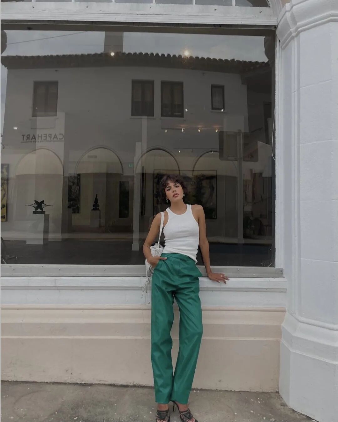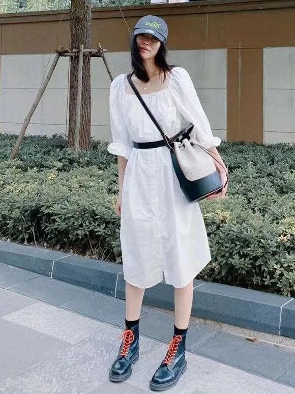 遵循“两件基础款”叠搭原则,同样可以给气场加分不少,值得注意的是,在这个穿搭招式中,一定要选择两件都为素净的基础款。极简的黑白灰能给人舒适的视觉效果,时髦人出门不知道穿什么的时候,选择素色准没错。在清爽的夏日,一身All White,既简单又时髦,完全不花哨,less is more的精髓被发挥到极致。不喜欢过于沉闷的,可以试试跳色,高饱和度的纯色也已经足够吸睛,用色彩分割出层次感,行云流水,简洁却不简单。