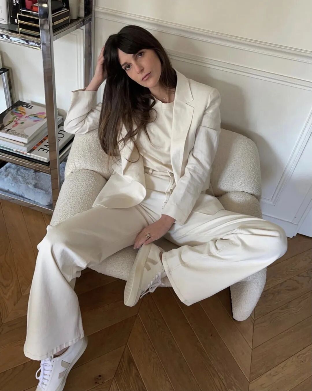 但值得注意的是,选择搭配的服装时只能突显一个繁复的重点,不然就会打破“基础感”的原则。像周雨彤直接穿上了一条垂坠感十足的阔腿裤,稍微夸张的拖地阔腿裤,将整套Look衬得大气又时髦,简洁又不会觉得过于花哨,完美诠释让“基础款变得高级”的含义。